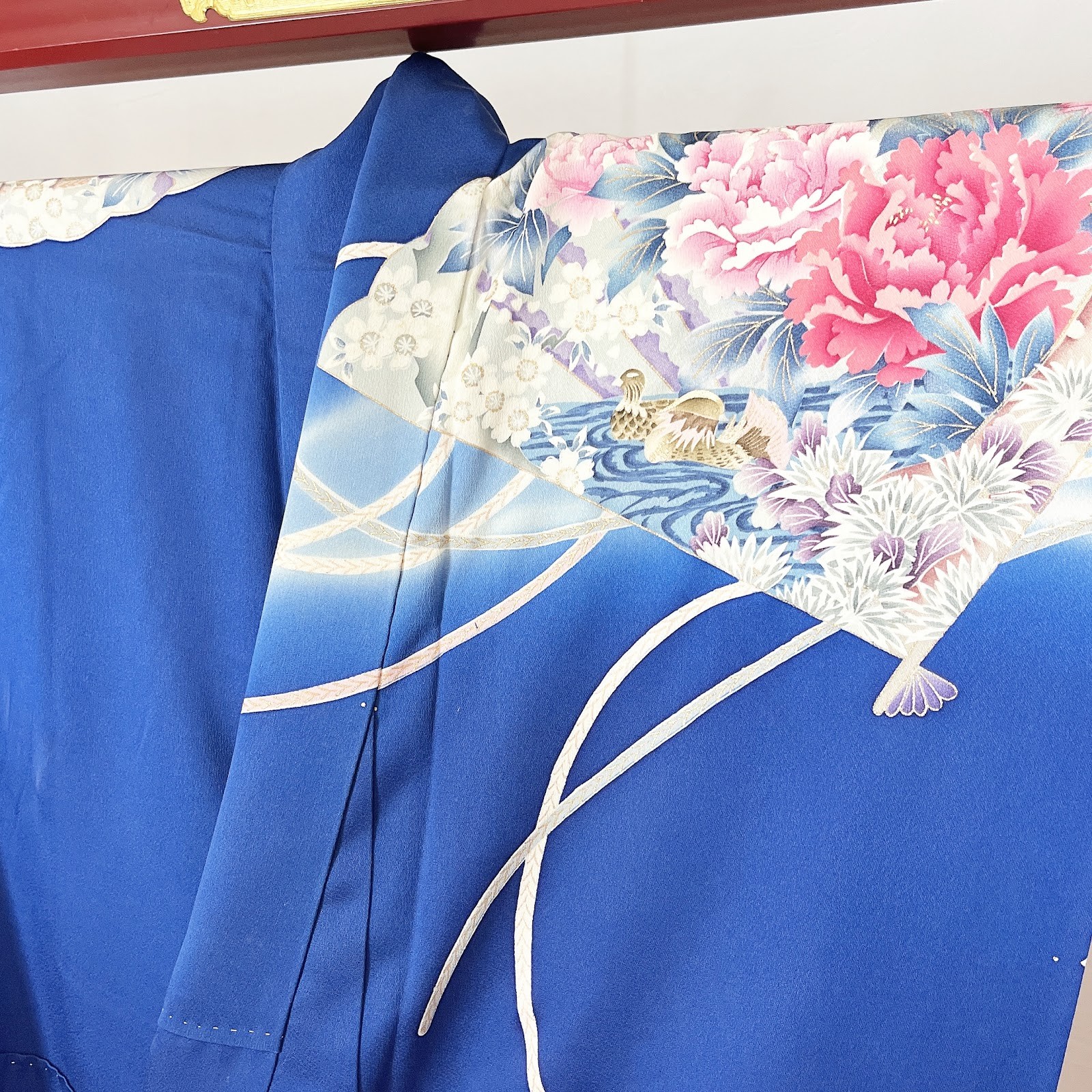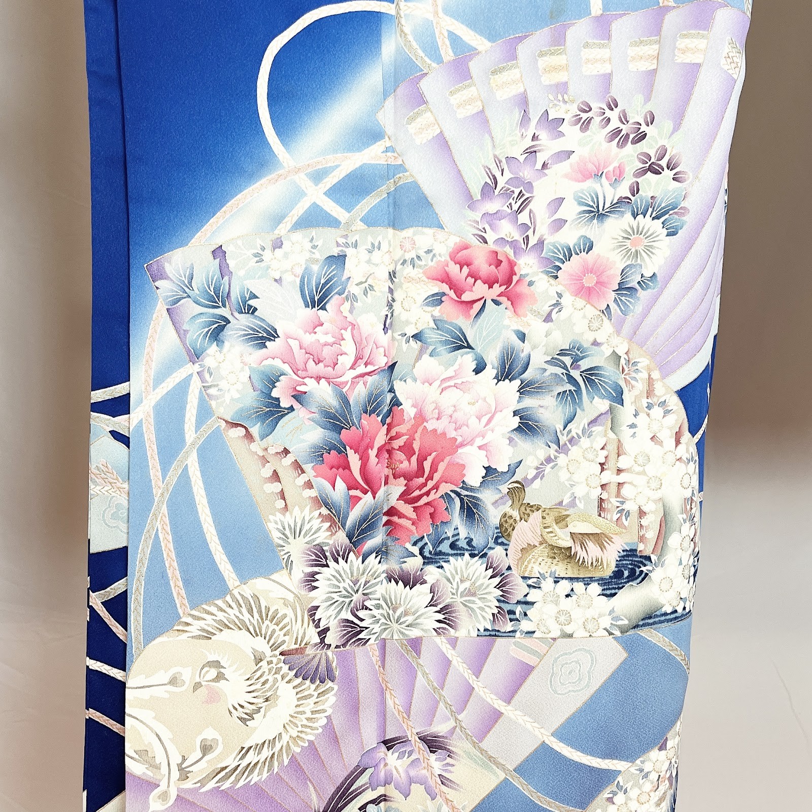 как выглядит Japanese Kimono FURISODE Silk/Cream/Gold/Flower/Traditional/ Vintage N0552 фото