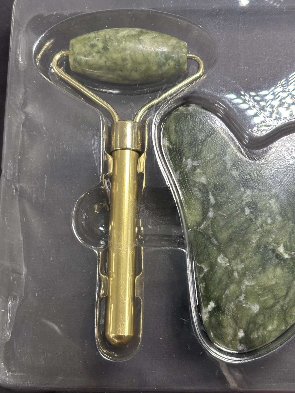 как выглядит Lindo Jade Roller Gua Sha Skin Massager Premium Massage Set Natural Jade фото