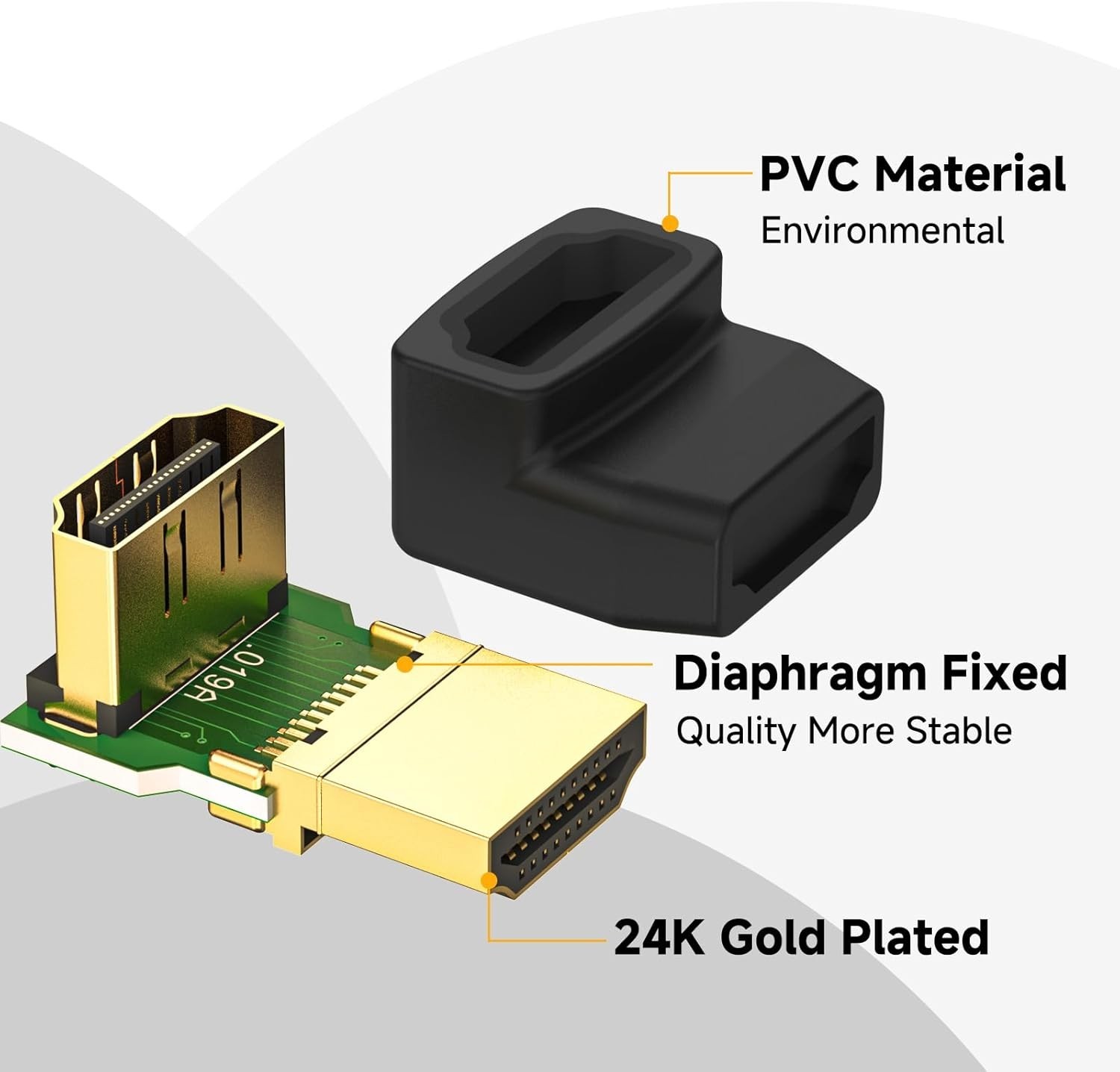 6-Pack HDMI 270 Adapter Set - Right Angle 4K 60Hz Male to Female Connectors