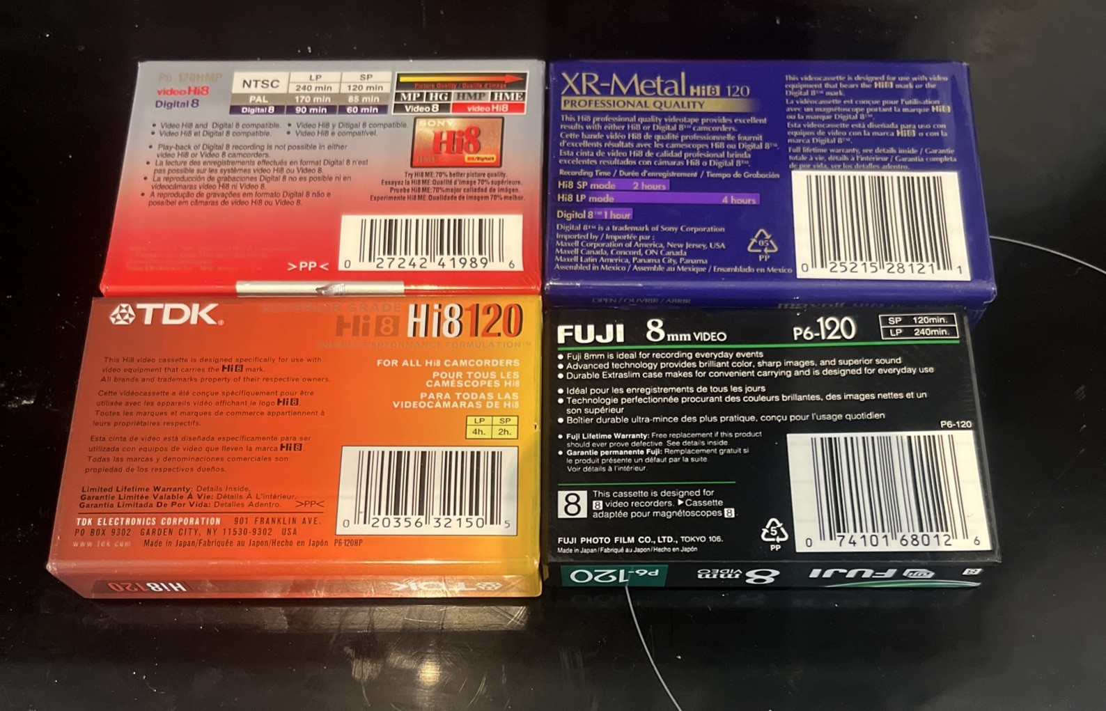 TDK Fuji Sony Maxwell 8mm Video Cassette Tapes 120 Min Lot Of 4 New Sealed Blank