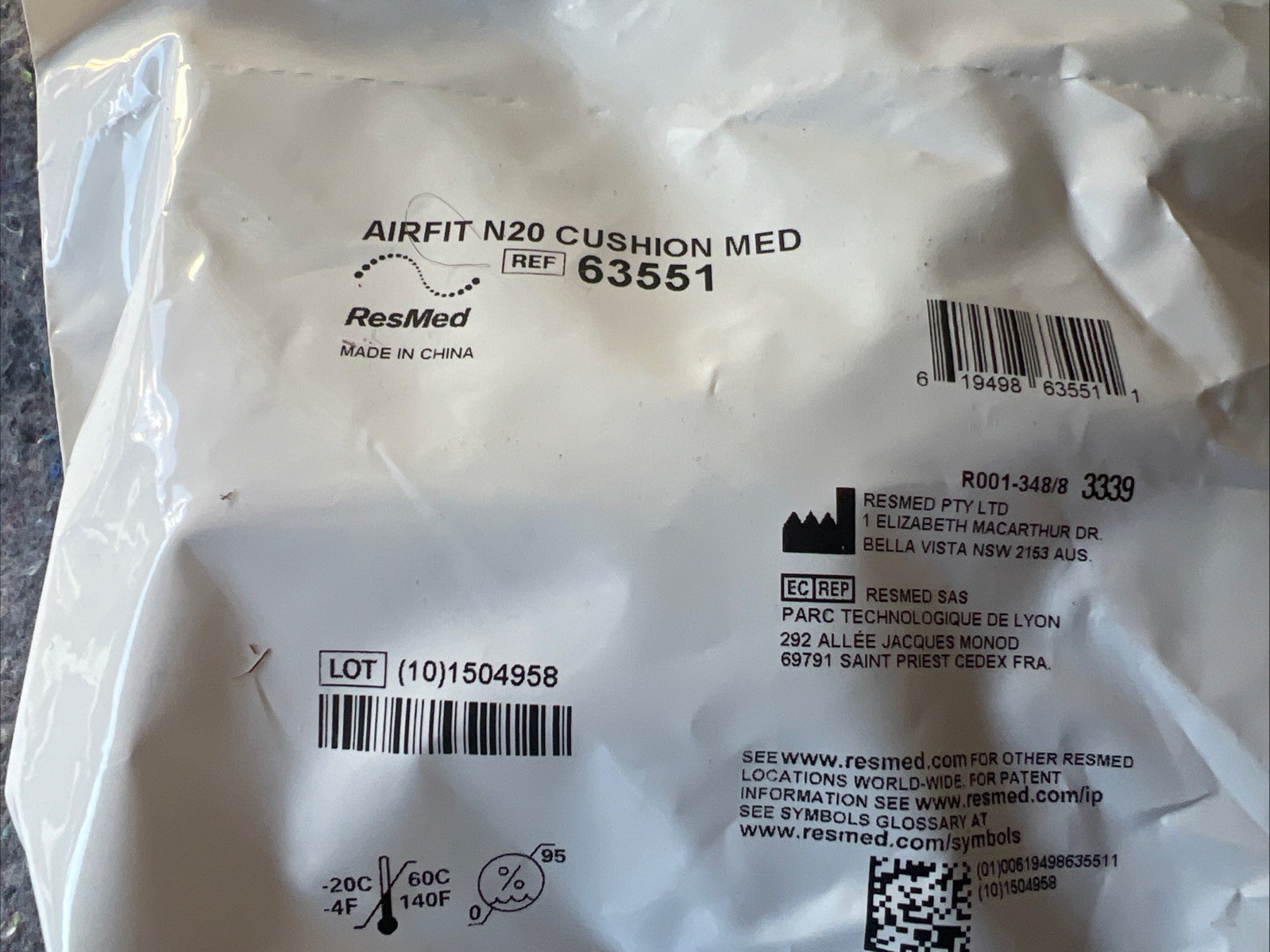 2 Resmed Airfit N20 Cushion, Medium - 63551 NEW IN SEALED BAG