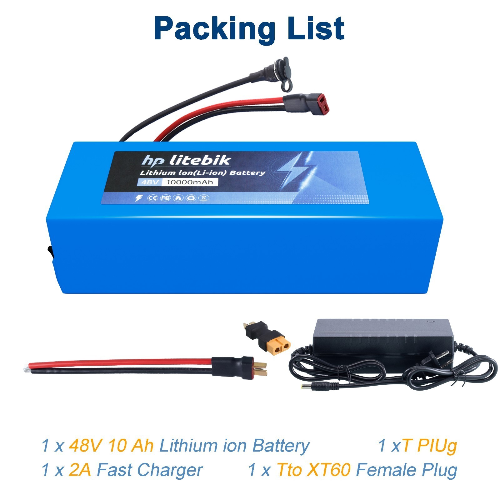 Set Includes: 1 x Fast Adapter, 1 x T Plug, 1 x T to XT60 Female Plug, Lithium Battery