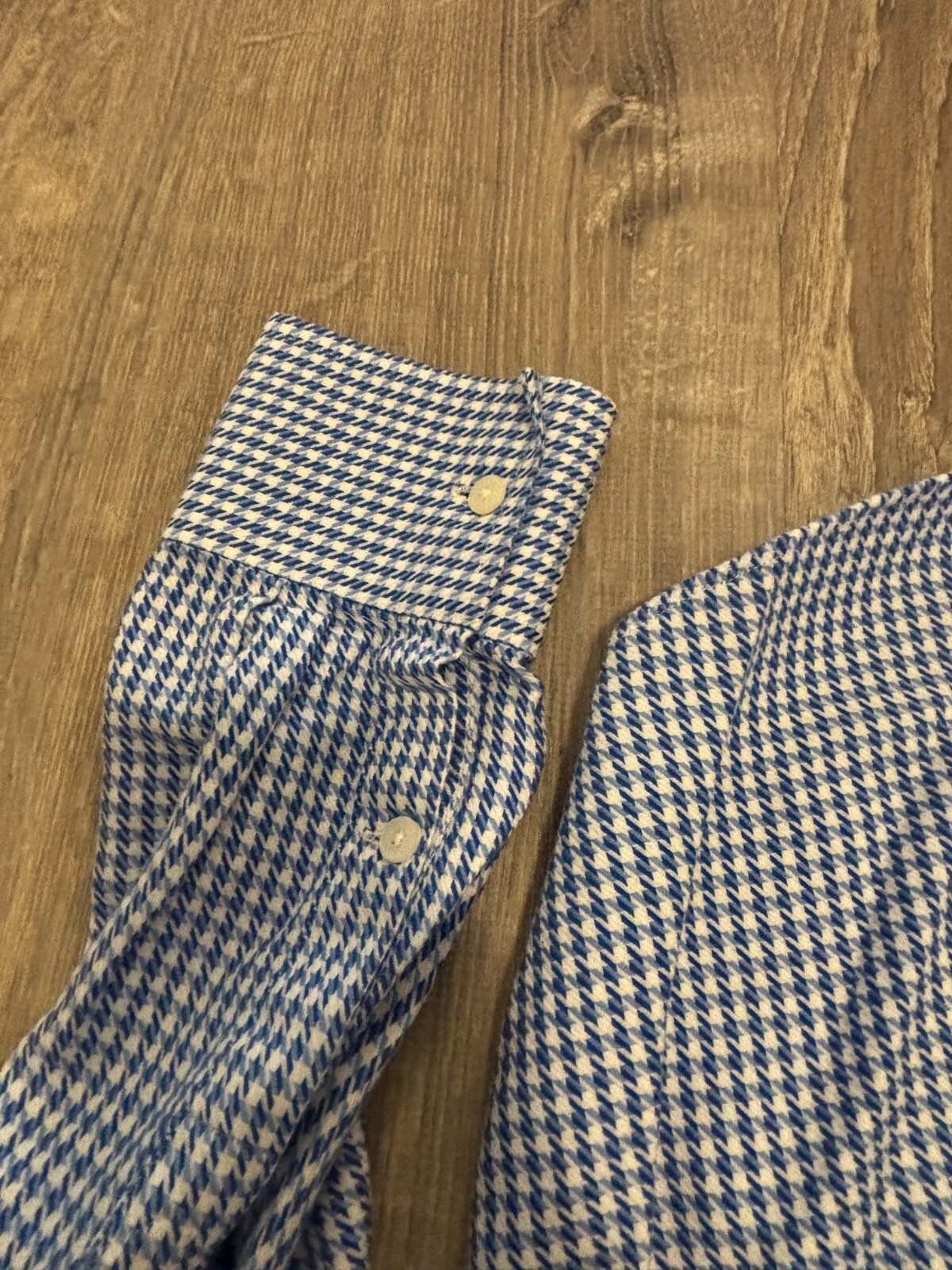 как выглядит Michael Kors Mens Blue White Gingham Button Down Long Sleeve Shirt Large фото