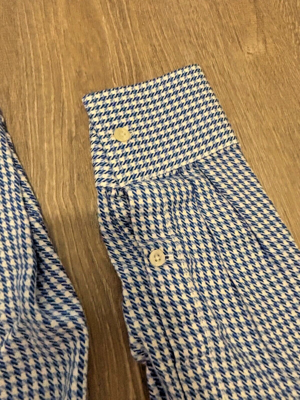 Michael Kors Men's Blue White Gingham Button Down Long Sleeve Shirt Large