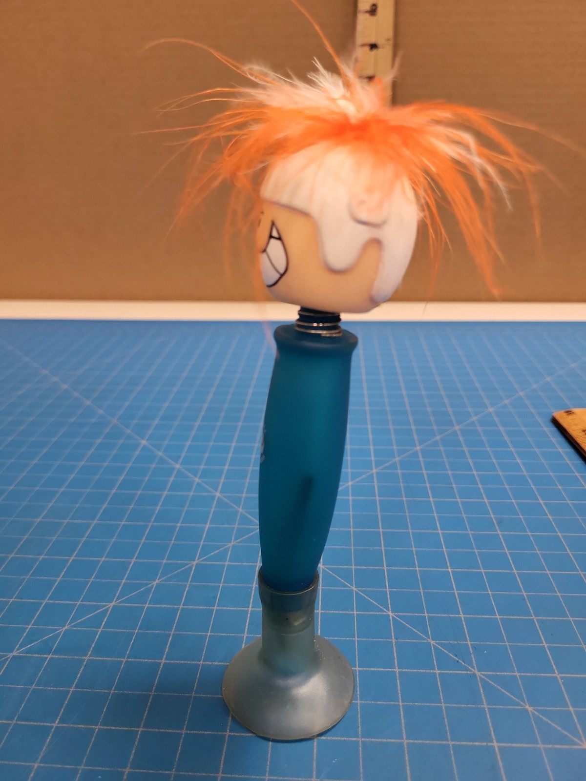 как выглядит Cranial Technologies Wiggle Pen Bobble Head Orange Hair Blue Pen Rare Desk Toy фото