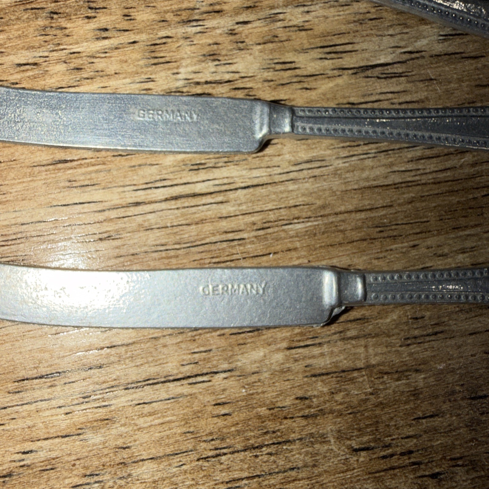• Antique German Soft Metal Miniature Silverware Set - 4" - 14 Pieces