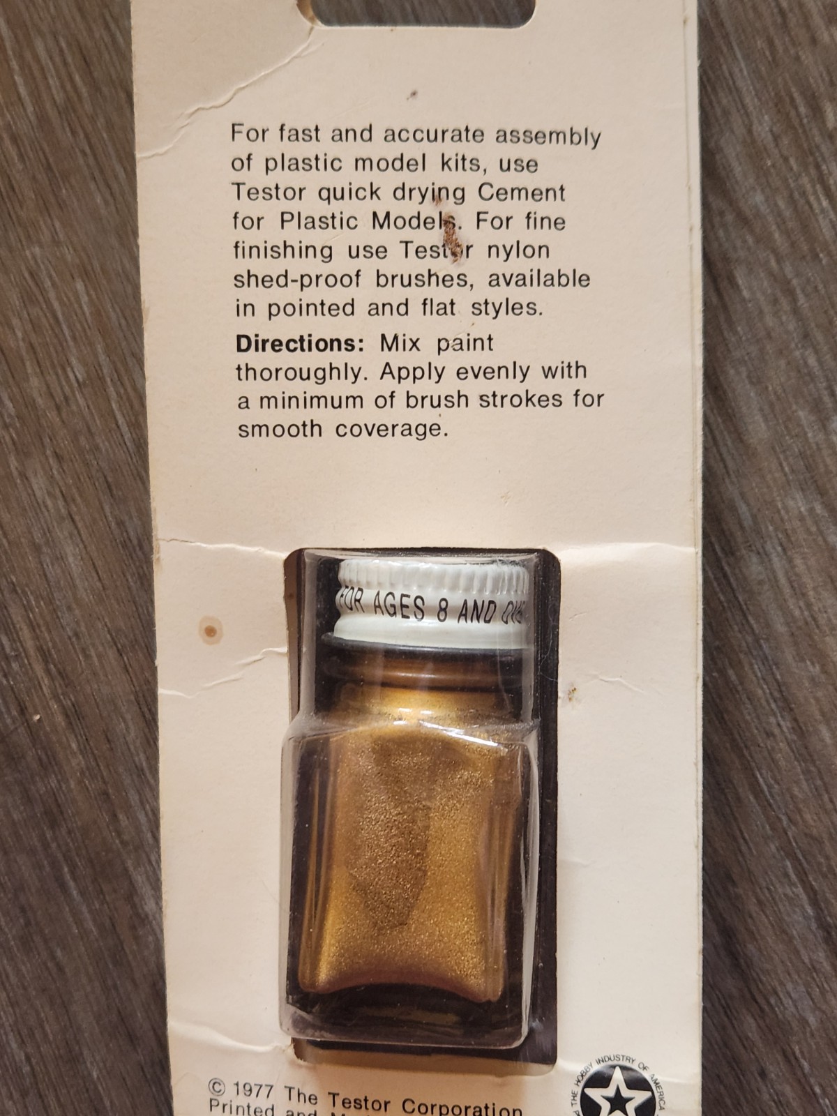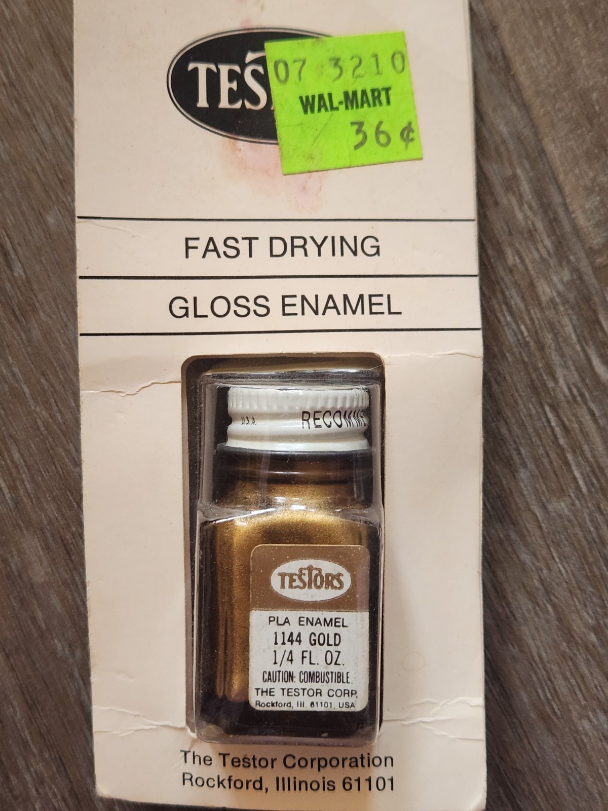 TESTORS PAINT GLOSS ENAMEL 1/4oz JAR 7.4ml plastic model car 1144 Gold NOS Vtg
