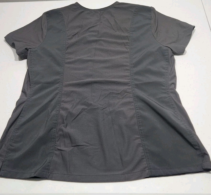 как выглядит Urbane Performance Scrub Top Women s Med Gray Solid Short Sleeve V Neck Pockets фото