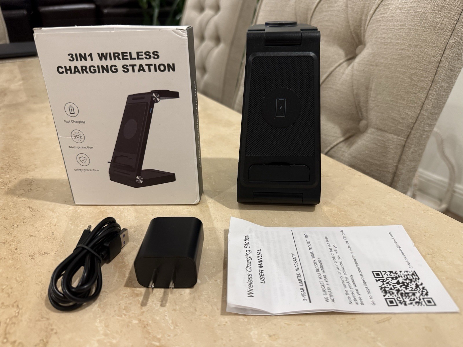 как выглядит 3-in-1 Wireless Charging Station Fast Charging Dock For Apple/Android Device BLK фото
