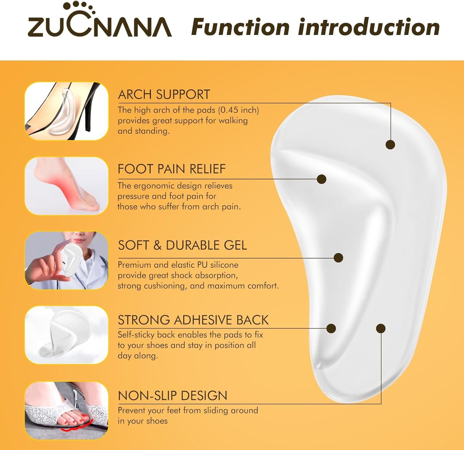 Self-Sticky Gel Arch Support Inserts for Foot Pain - Perfect for Any Shoe