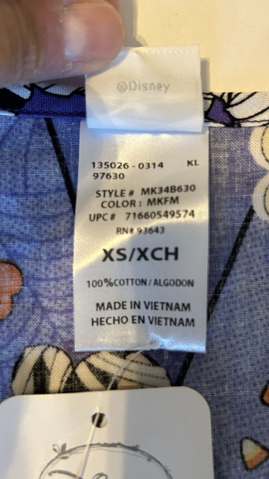 Halloween Scrub Top womens size XS Disney Mickey Mouse Frankenstein Mummy NWT