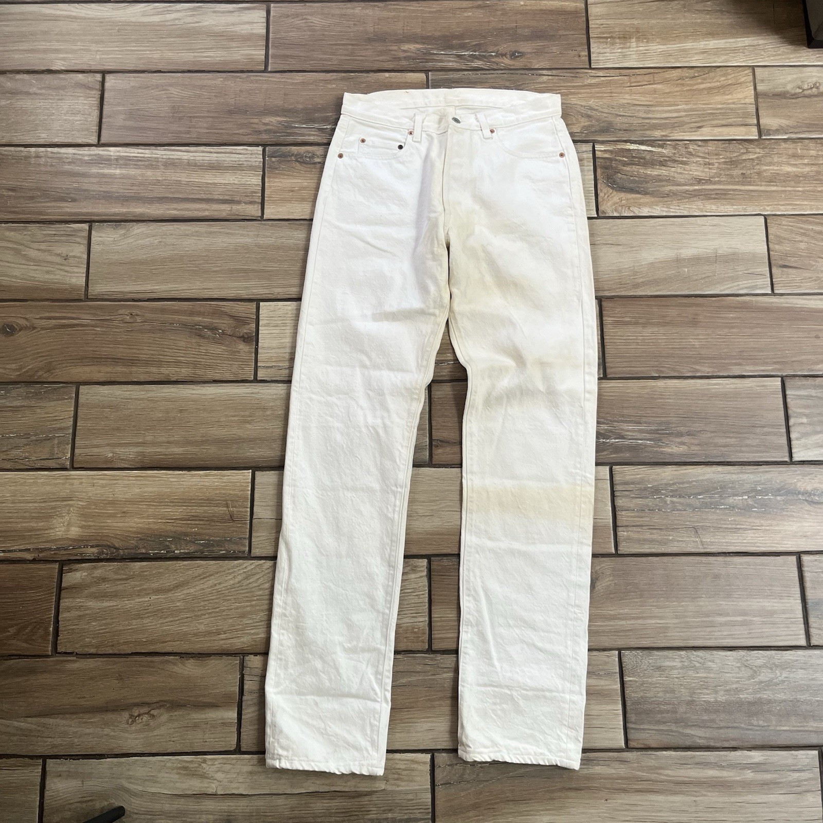 как выглядит VTG Levis 501 Jeans Mens 31x29.5 White Denim Button Fly 501-0651 Made In USA фото