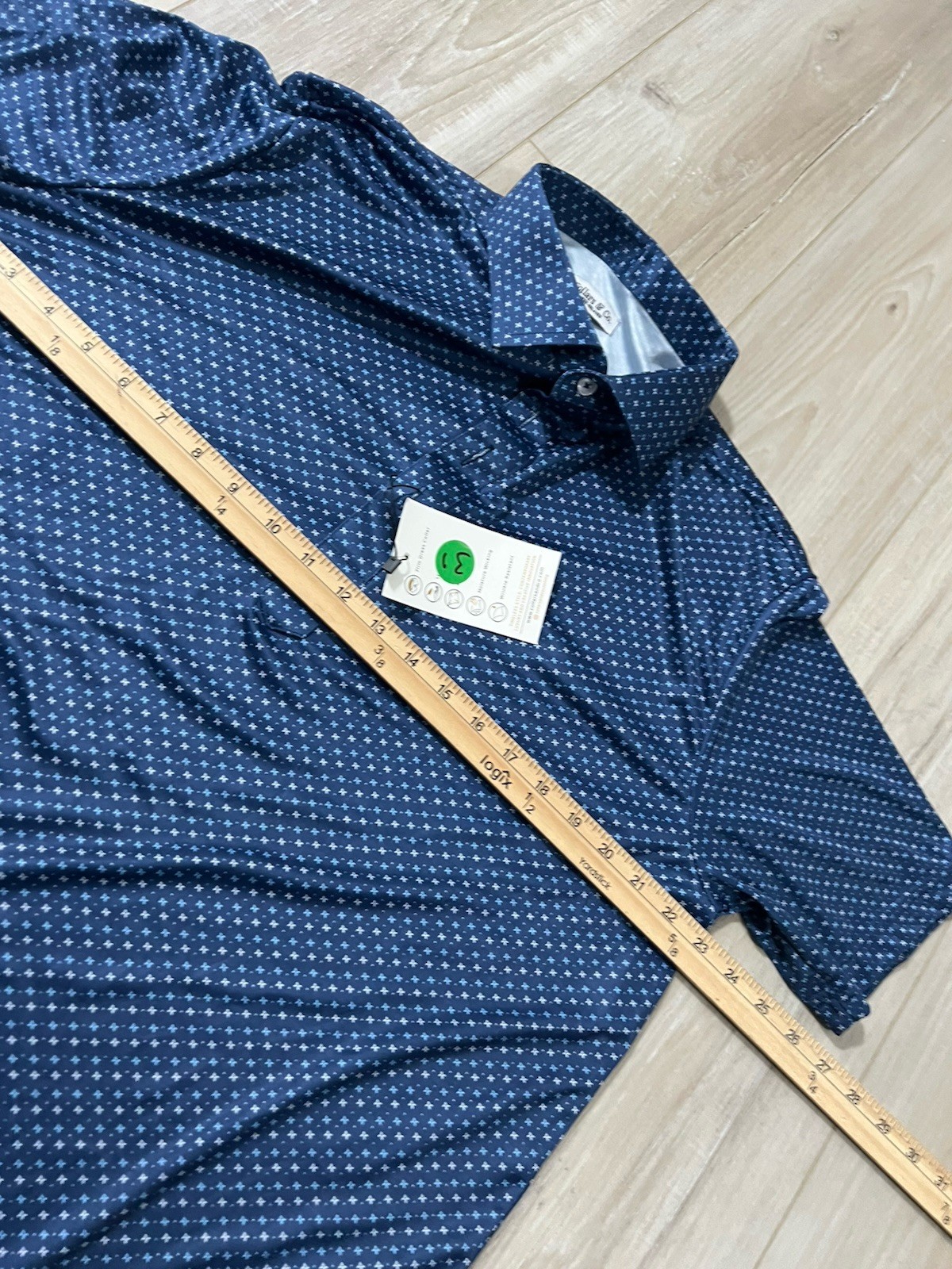 Collars and Co. Short Sleeve Polo L Geometric AOP Blue Relaxed Fit