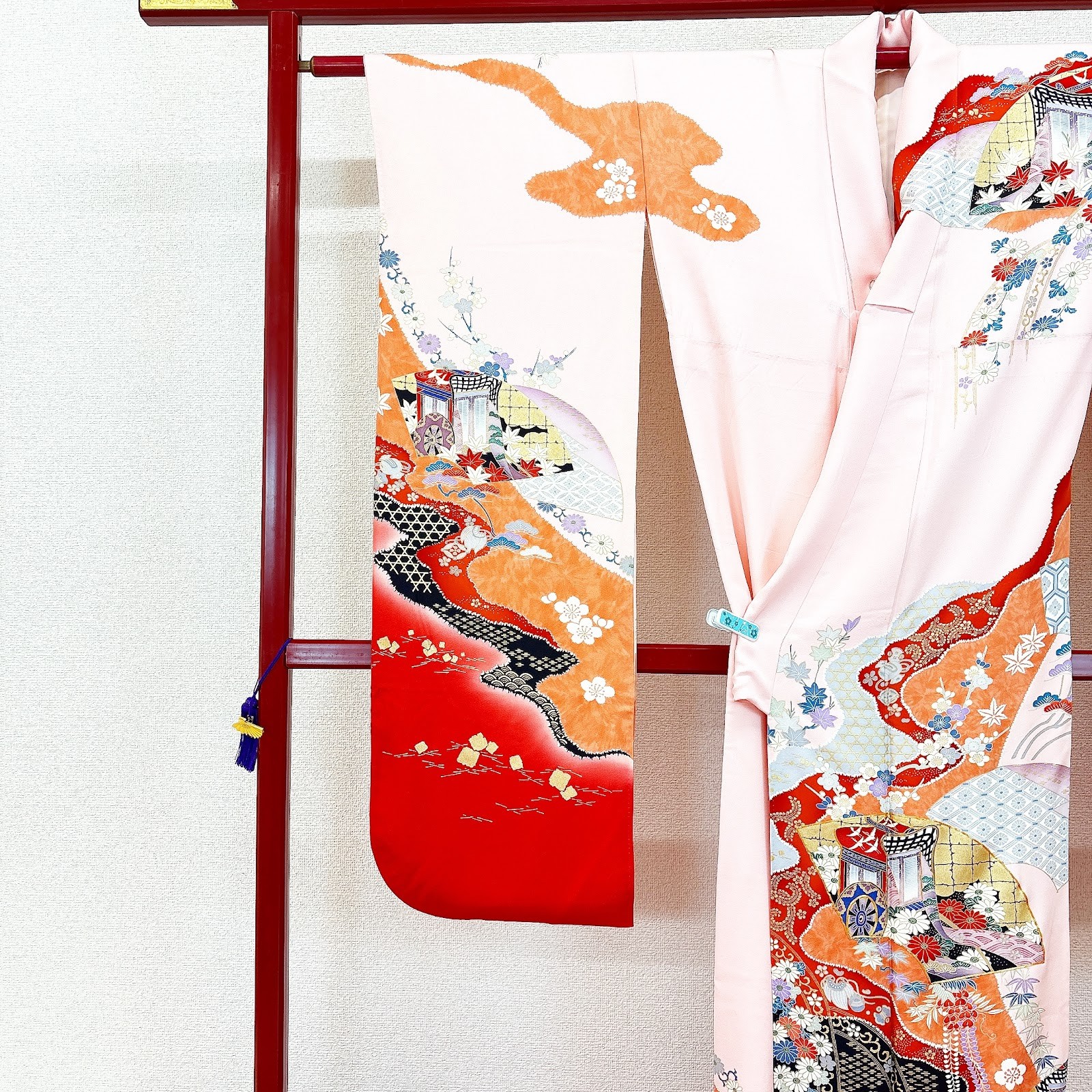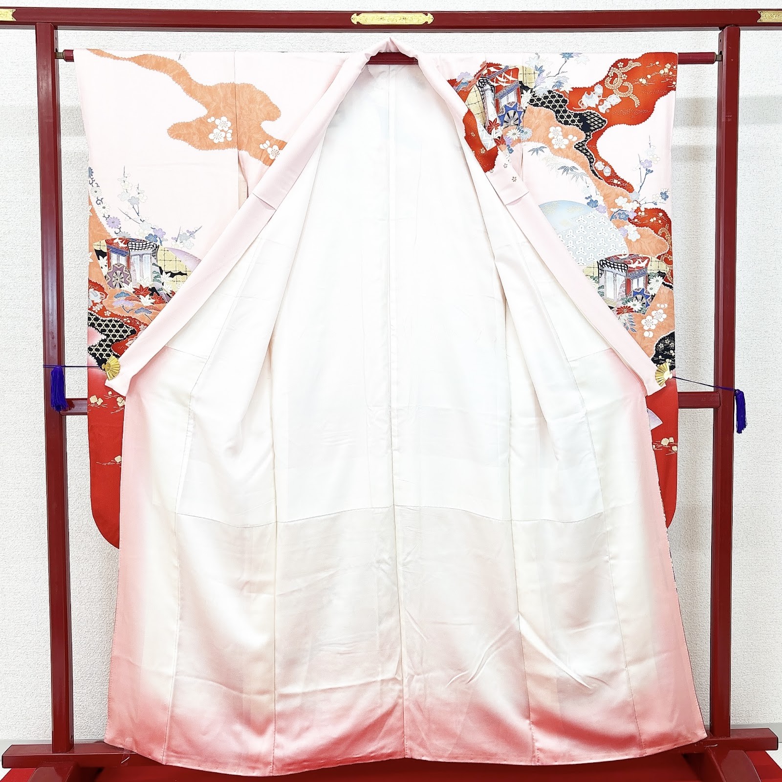 • Japanese Kimono 'FURISODE' Silk/Light pink/Red/Traditional/Length:160cm N0867