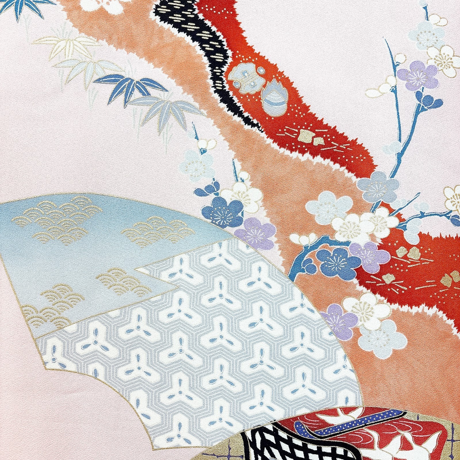 Japanese Kimono 'FURISODE' Silk/Light pink/Red/Traditional/Length:160cm N0867