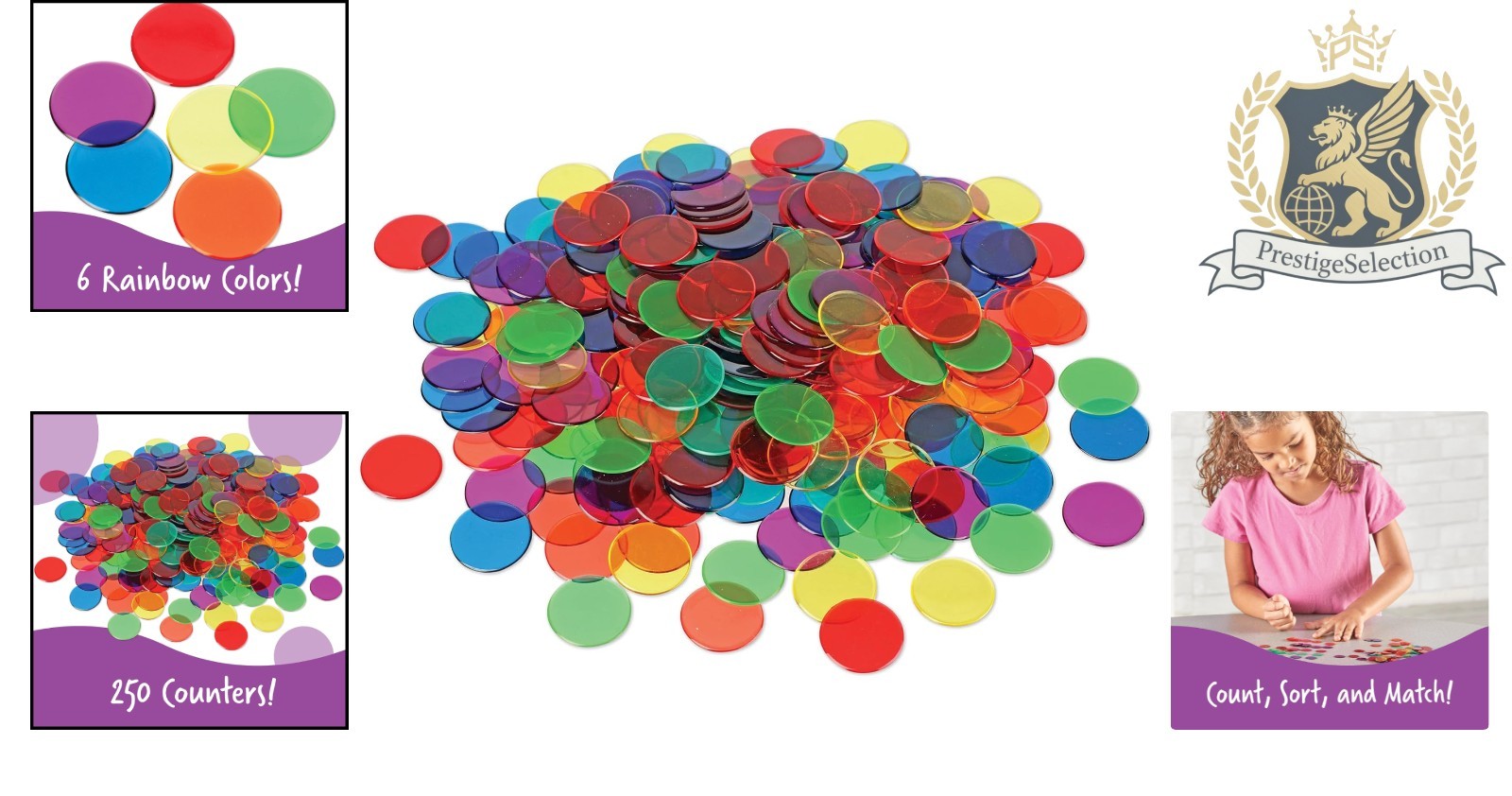 Colorful 250 Transparent Counting Chips - Perfect for Classroom Home Fun