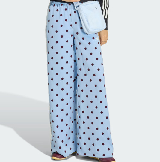 как выглядит Adidas Women Satin Polka Dot Wide Leg Pants Clear Sky Asian Size KV1170 фото