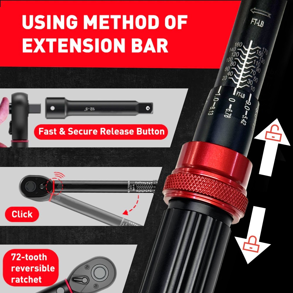 1/2 Torque Wrench Snap Socket Professional Drive Click Type Ratcheting
