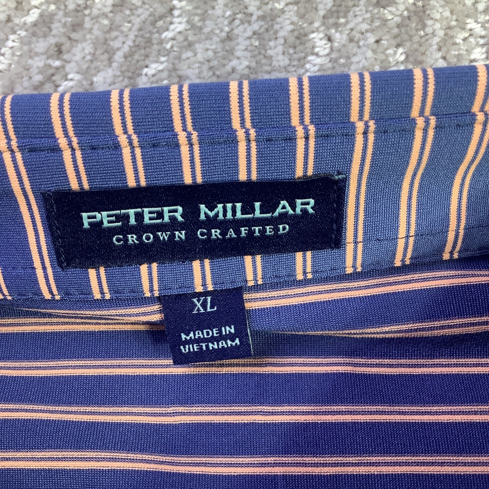 как выглядит Peter Millar Crown Crafted XL Striped Tailored Fit Golf Polo Shirt NWT фото