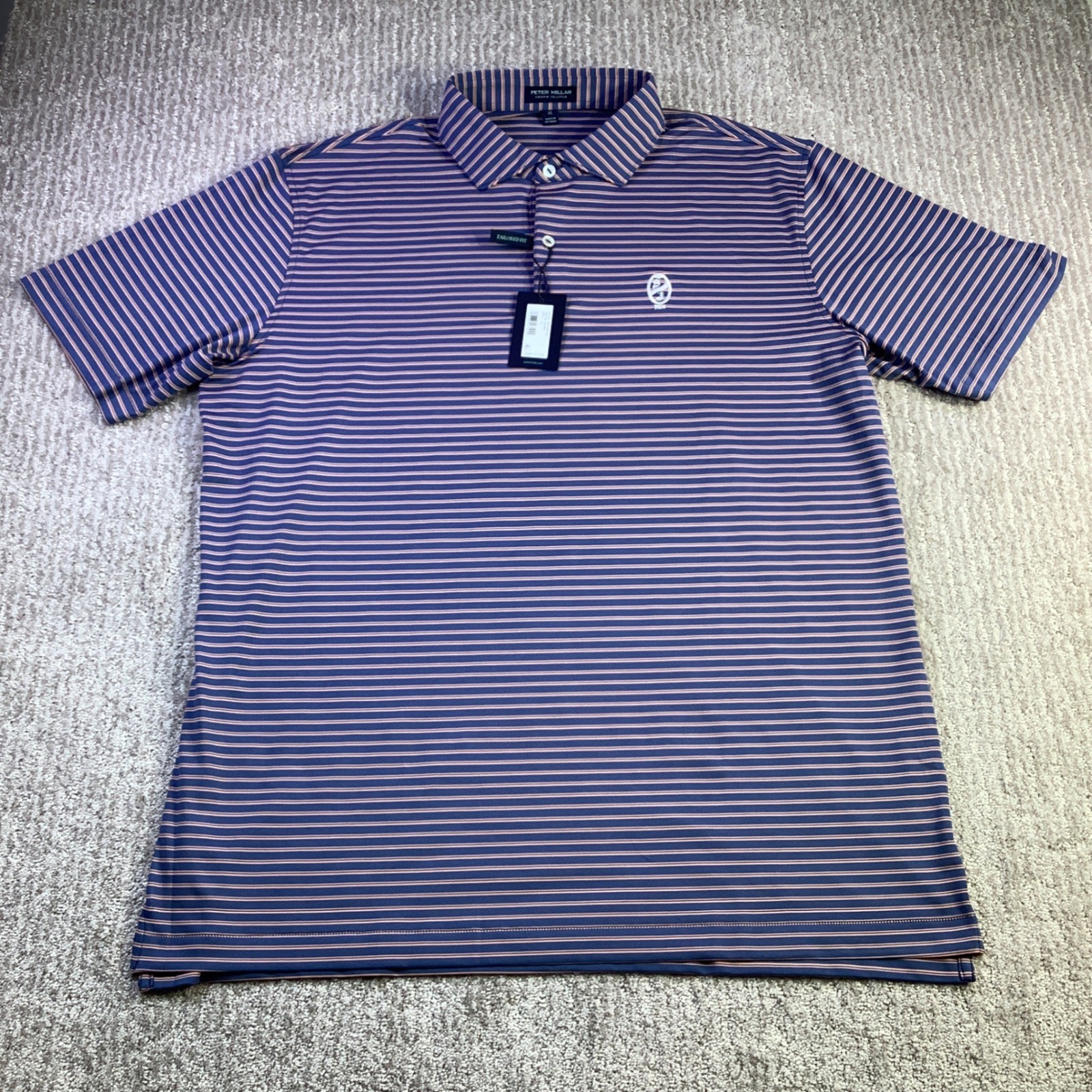 Peter Millar Crown Crafted XL Striped Tailored Fit Golf Polo Shirt NWT