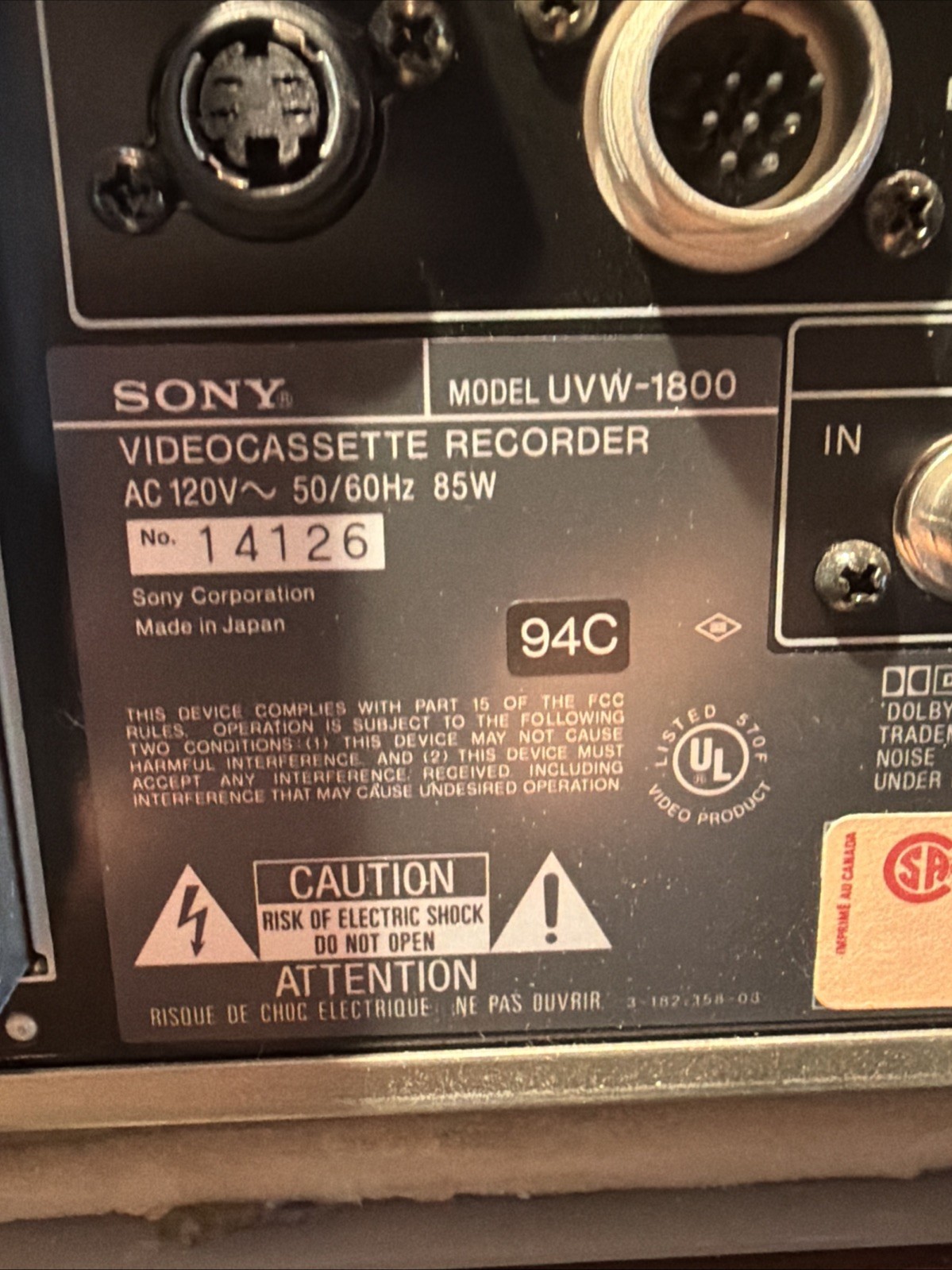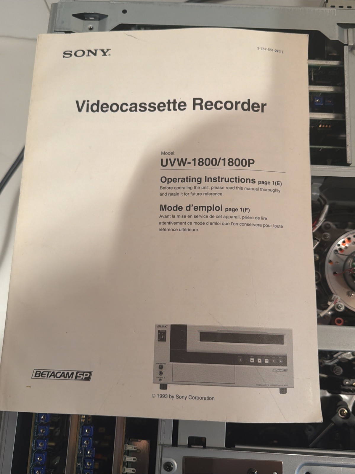 Sony UVW-1800 Betacam SP Cassette Recorder With Manual