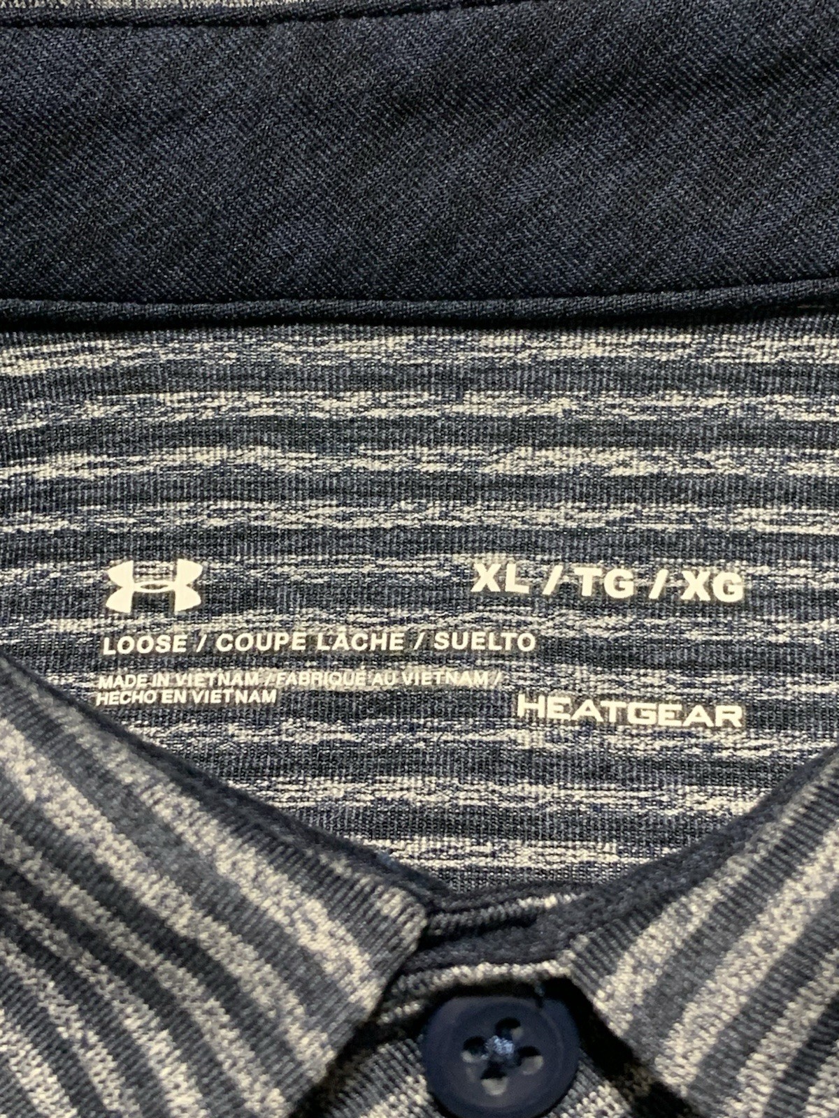 Under Armour Mens XL Loose Heat Gear Blue Striped Performance Golf Polo