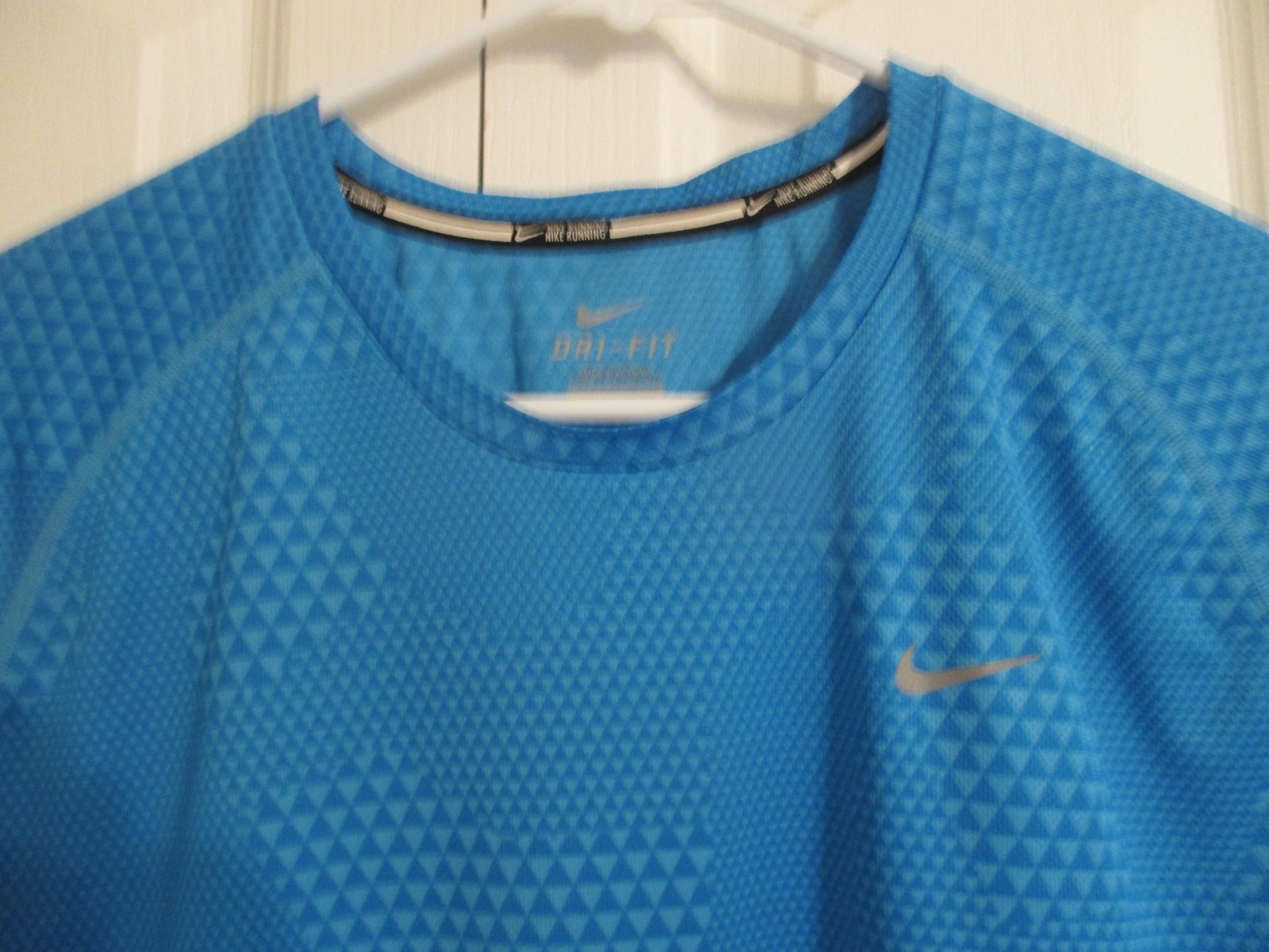 Nike Miler Fit Dri-fit Athletic Running Workout Shirt Men's L Blue Geometric