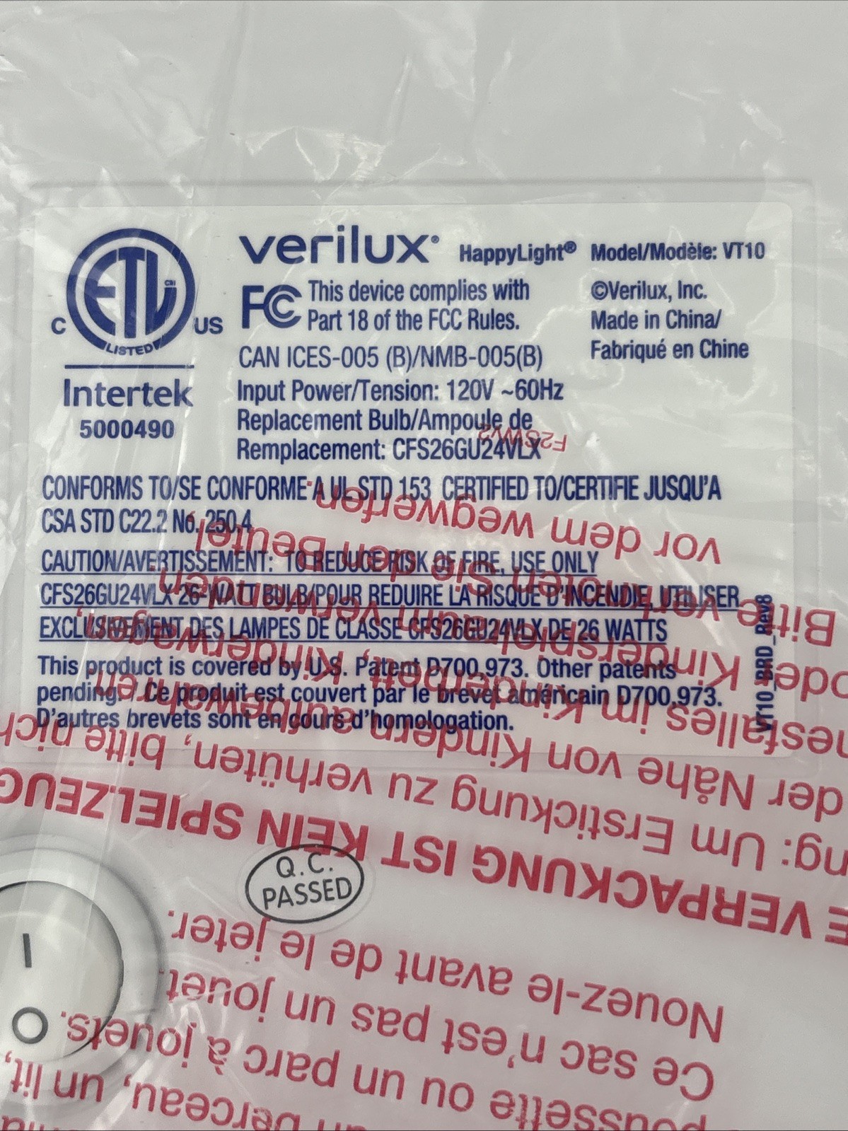 NEW Verilux HappyLight Compact Energy Therapy Lamp VT10 Alleviate Winter Blues