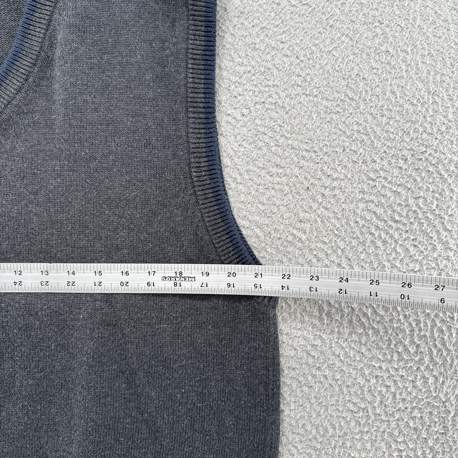 Vintage Trader Bay Mens Sleeveless Blue Sweater V-Neck Cotton Vest in Size Large