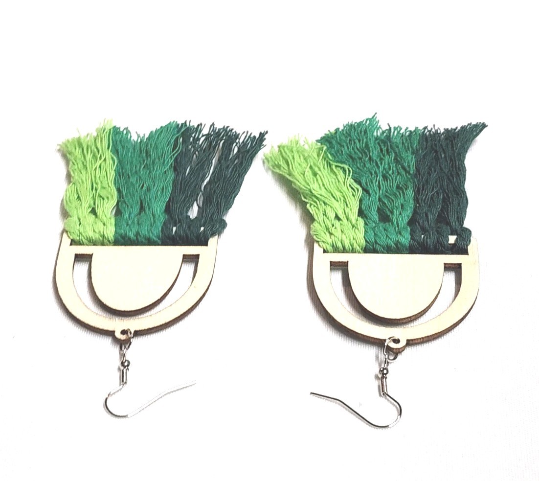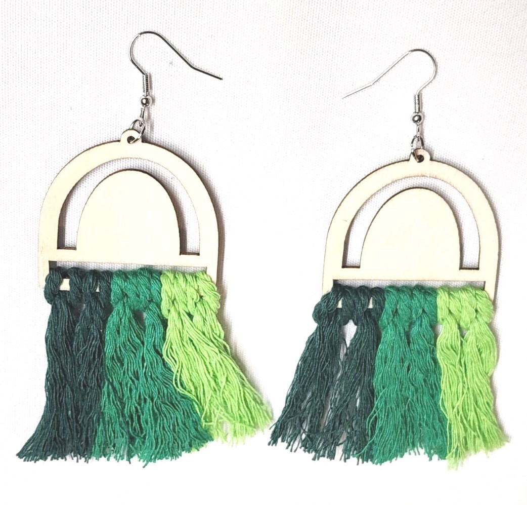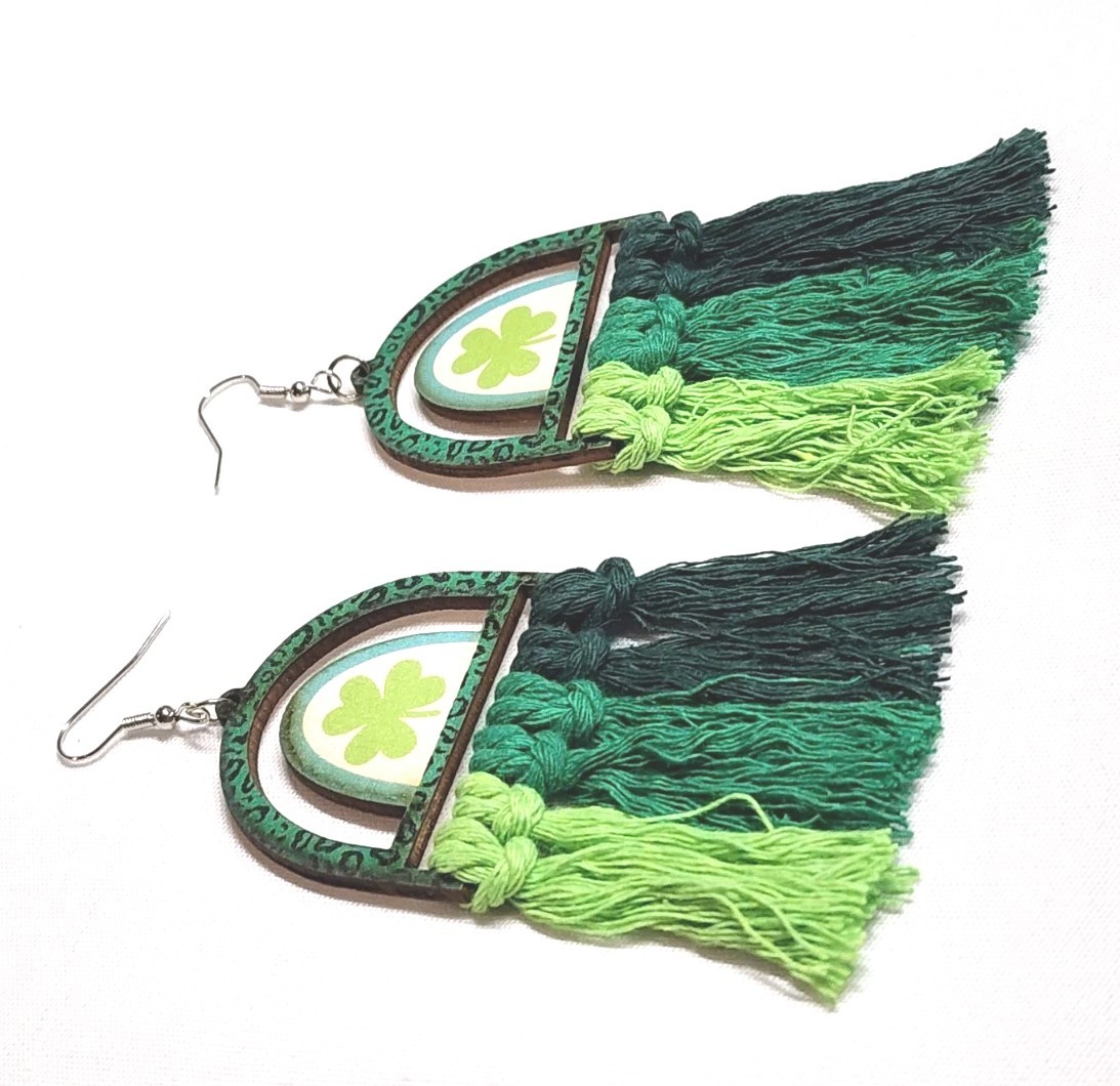 как выглядит New Green Shamrock Wood Cat Print Tassel St. Patricks Day Earrings Statement фото
