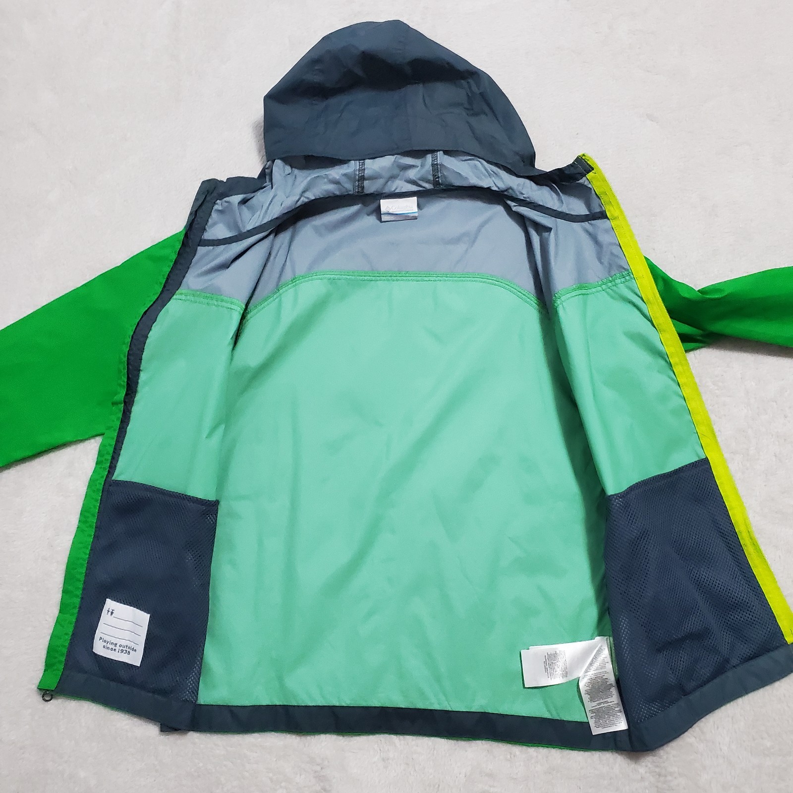как выглядит Columbia Jacket Youth Boys M Green Gray Long Sleeve Full Zip Hooded Windbreaker фото
