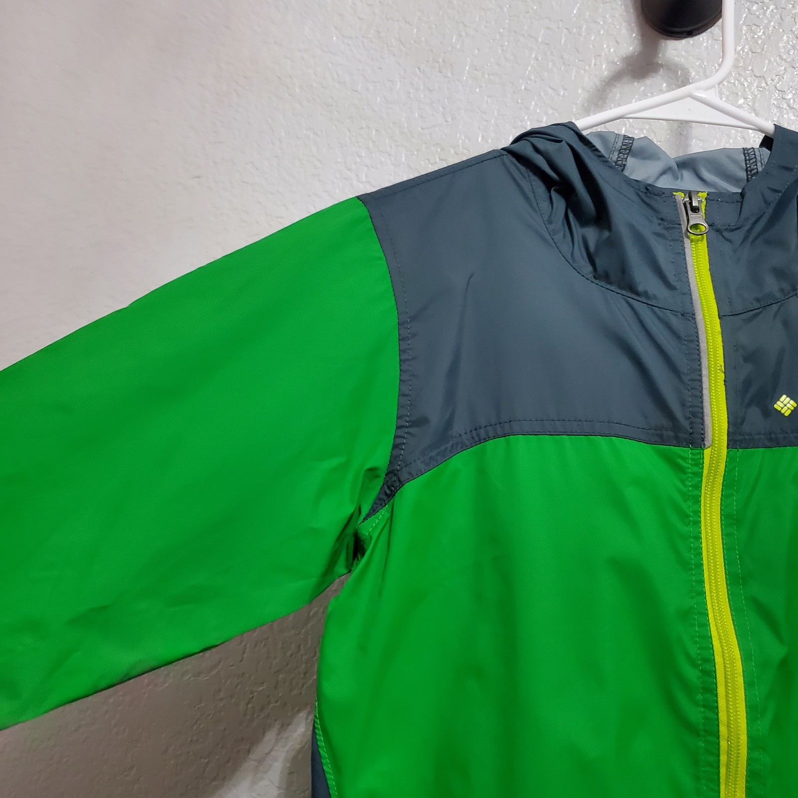 Columbia Jacket Youth Boys M Green Gray Long Sleeve Full Zip Hooded Windbreaker