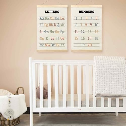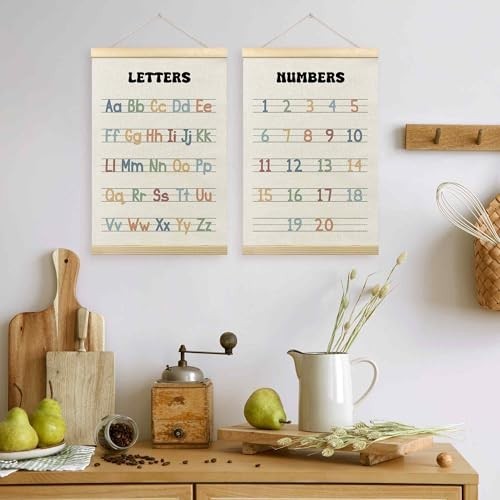 Set of 2 ABC Numbers Chart Posters for Kids - Educational Wall Art Decor 16x24