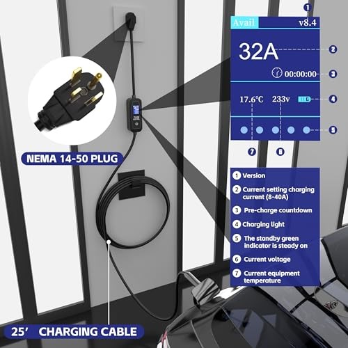 Level 2 EV Charger - Portable 40 Amp 9.6kW EV Charger, NEMA 14-50 Plug