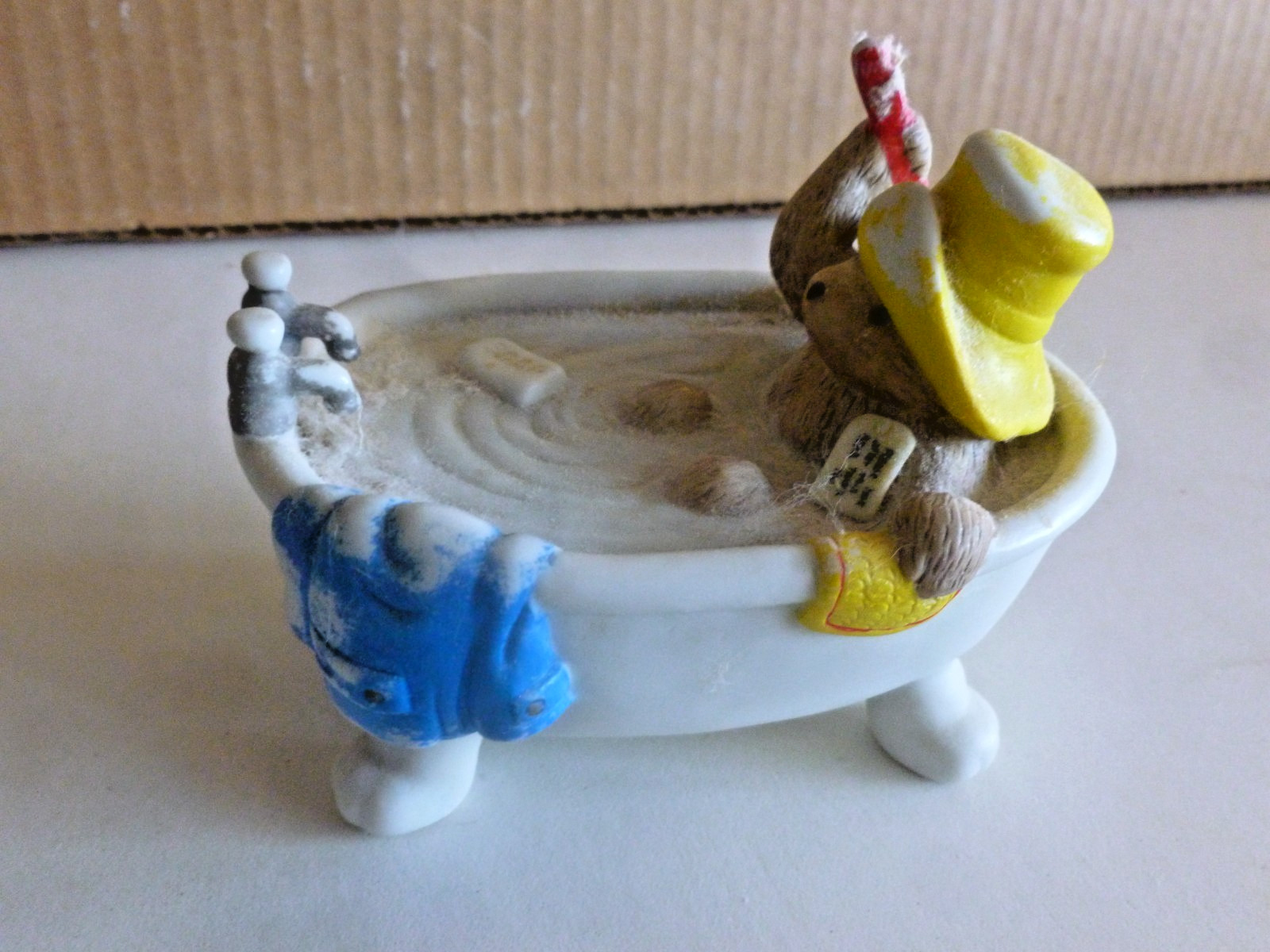 как выглядит Vtg Enesco, Eden Toys Paddington Bear In A Tub, 1990 Ceramic Figurine With Tag фото