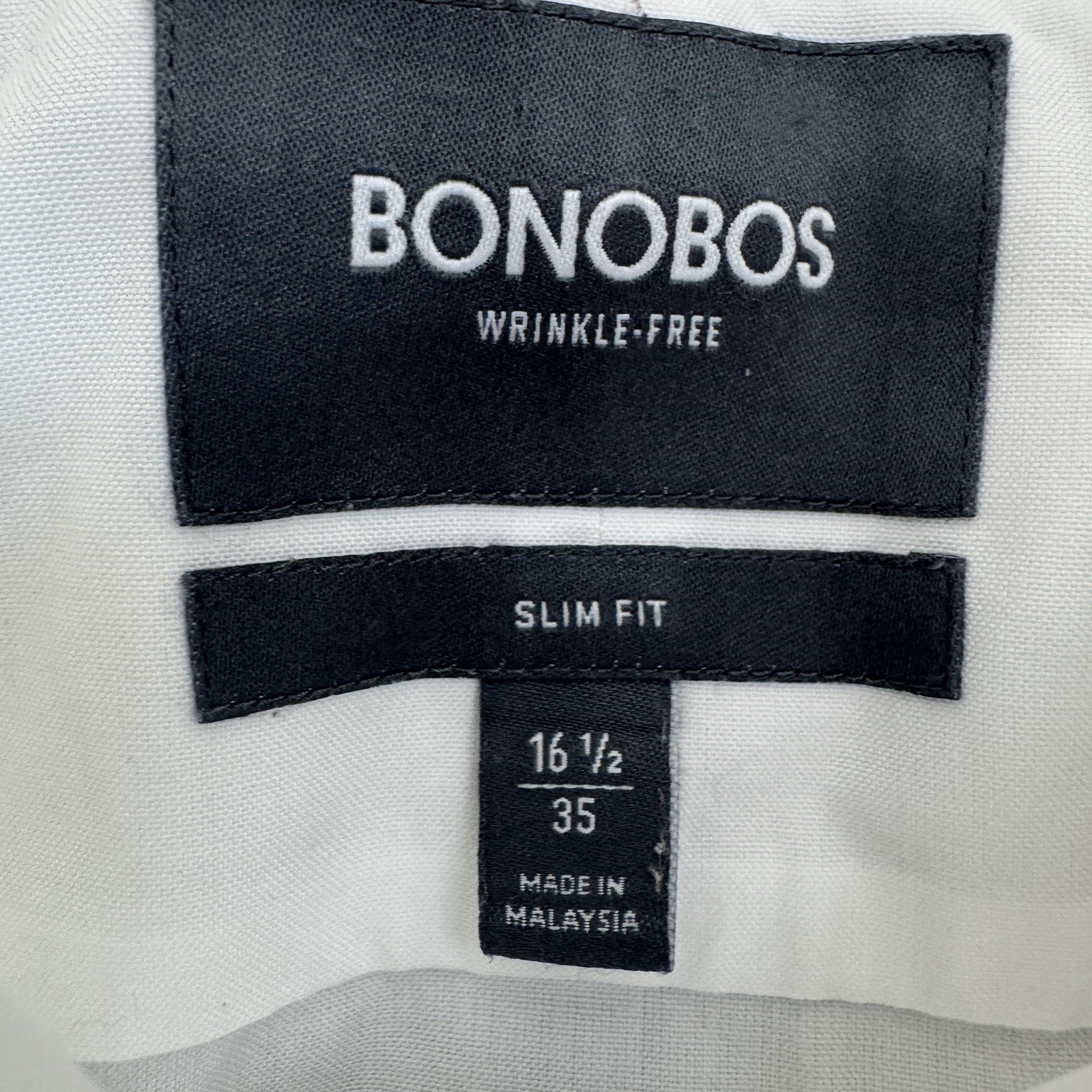 Bonobos Wrinkle Free Slim Fit Dress Shirt Mens Large Short White Size 16 1/2 35