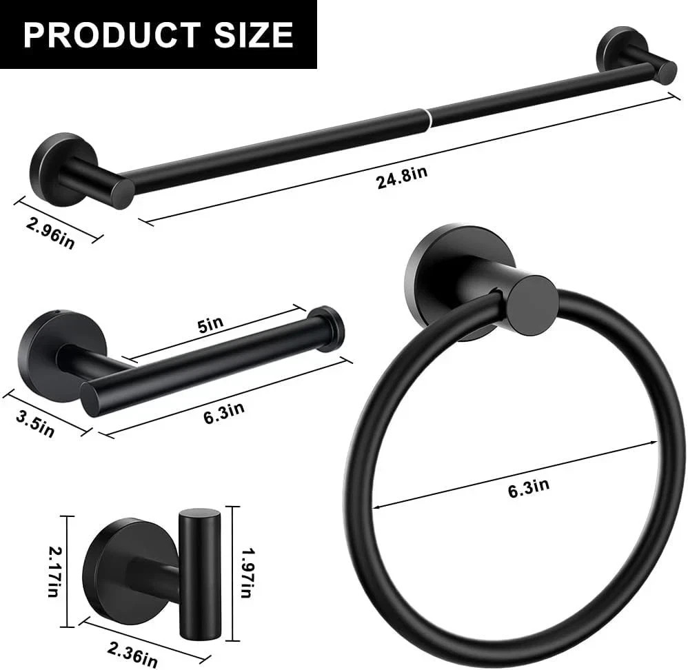 5 PCS Bathroom Accessories Set Matte Black Adjustable Towel Bar Towel Hook Ring