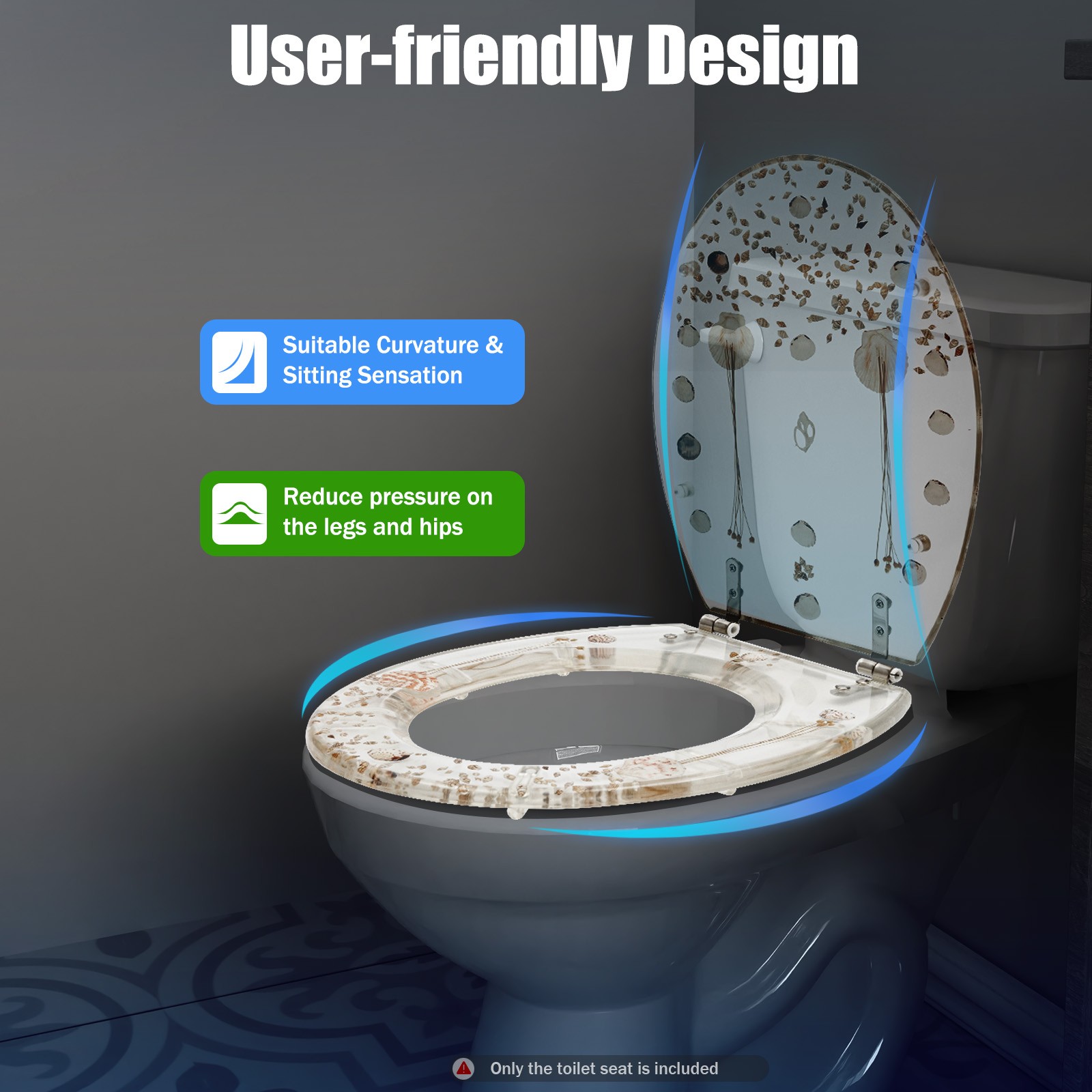 Transparent Toilet Seat Resin Toilet Seat Easy Clean Home Bathroom Shells Decor