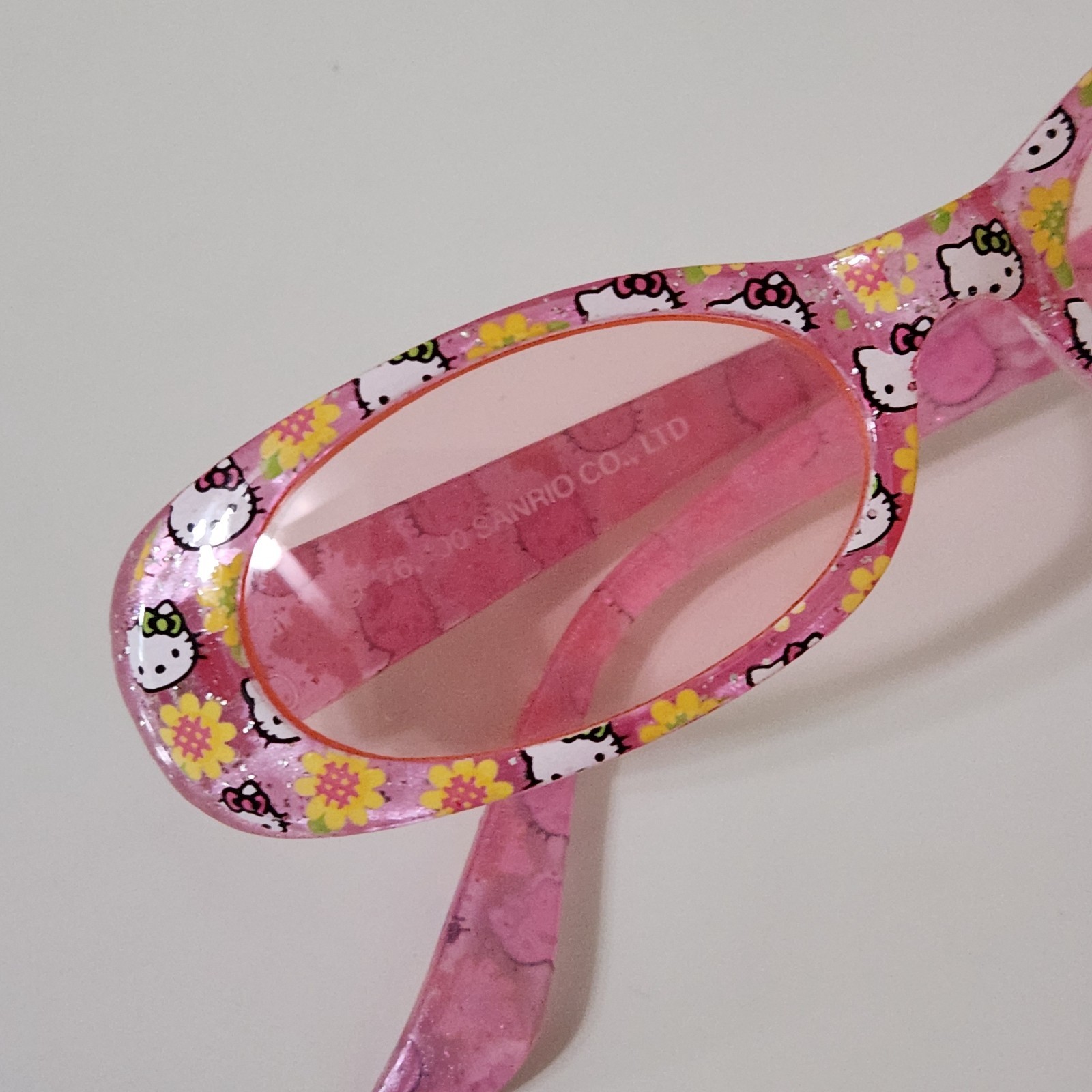 как выглядит Vintage Sanrio Hello Kitty Pink Sunglasses Youth Size Flowers Kitty Pattern Tint фото