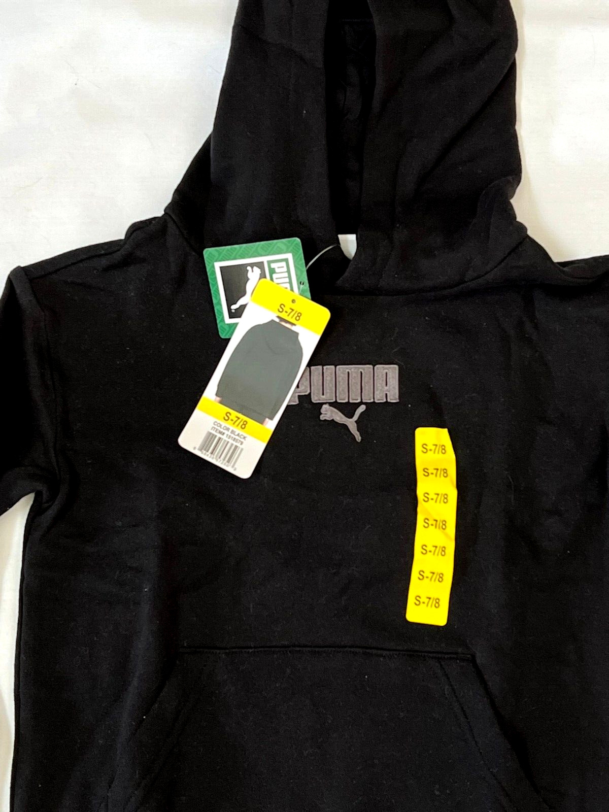 PUMA Youth Hooded Black Fleece Sweatshirt Logo Pullover Hoodie NWT S 7/8