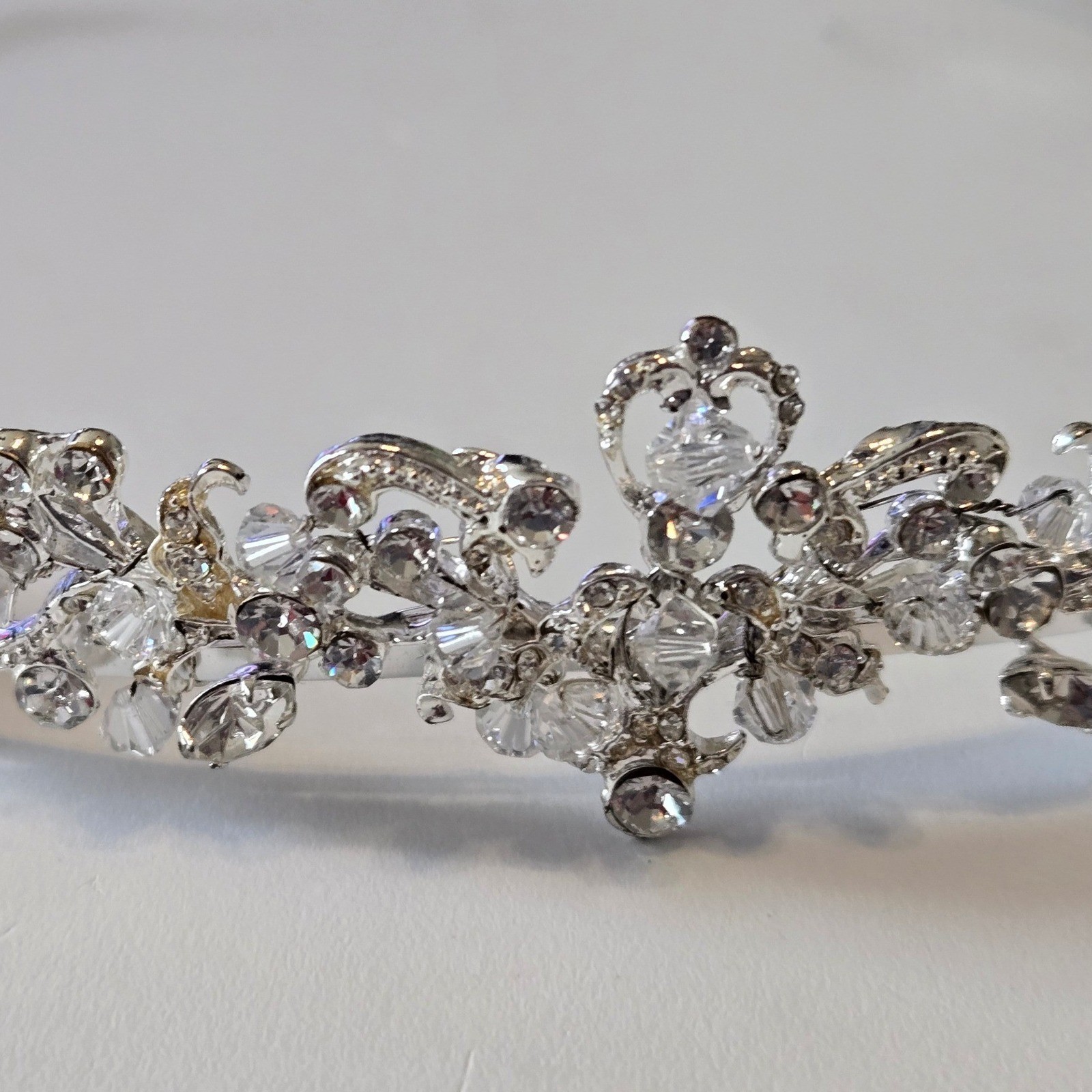 Silver Crystal Floral Bridal Tiara Headband Wedding Rhinestone Crown