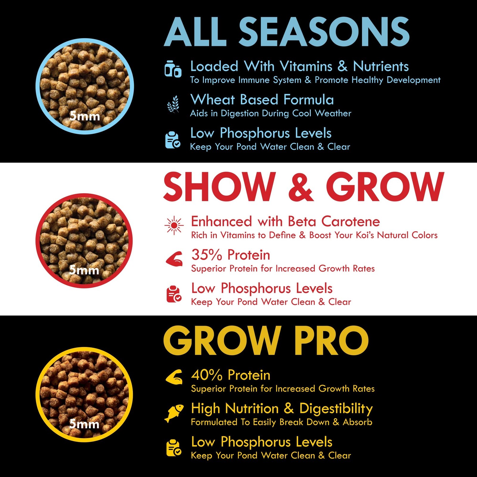 20 Pound 5mm Koi Fish Food Show Grow KOISG-020 HALF PONDS Floating Pellets