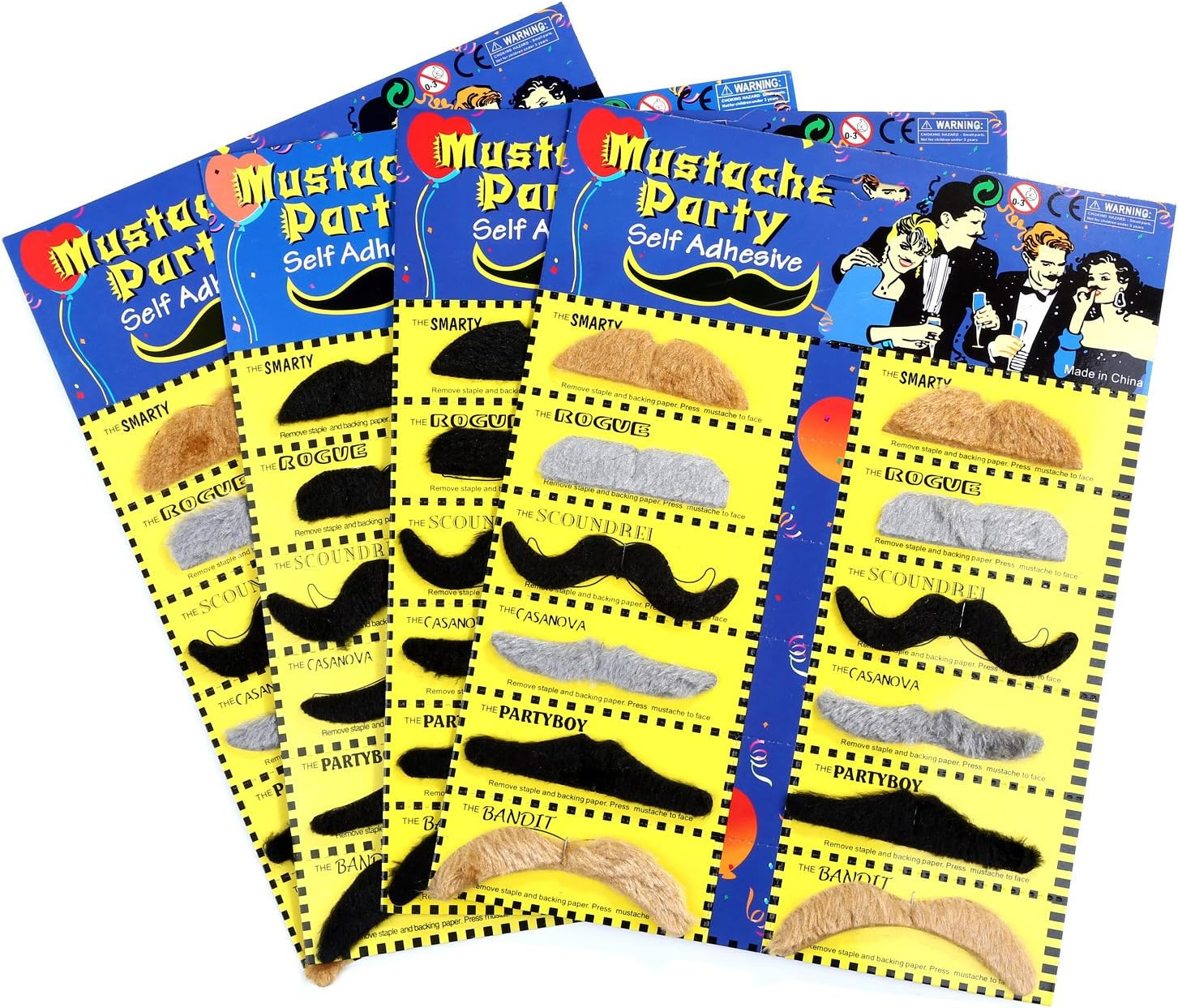 48Pcs Fake Mustaches Self Adhesive Novelty Costume Facial Hair Set
