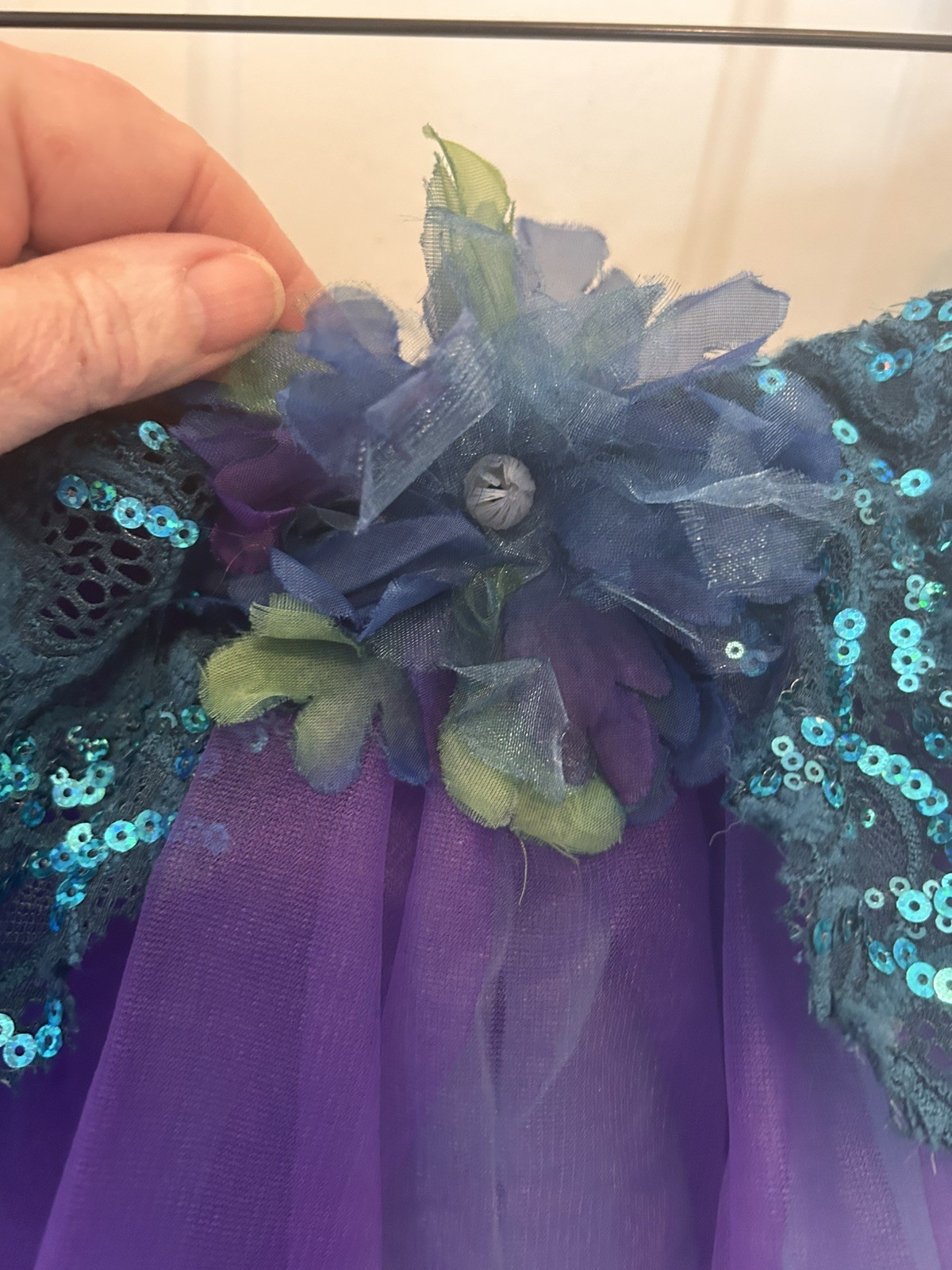 как выглядит Weissman Dance Costume Tutu Skirt Girl waist 22 inches Purple Blue Flowersequins фото