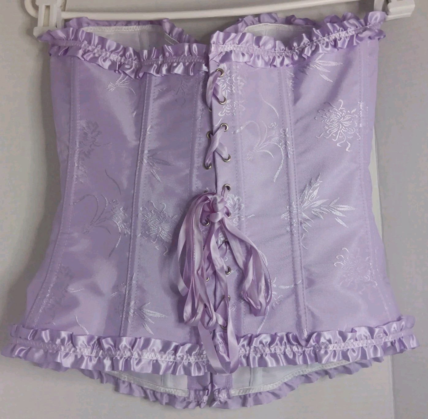 как выглядит Bustier Corset Top M Brocade Floral Coquette Soft Girl Victorian Boned Purple фото