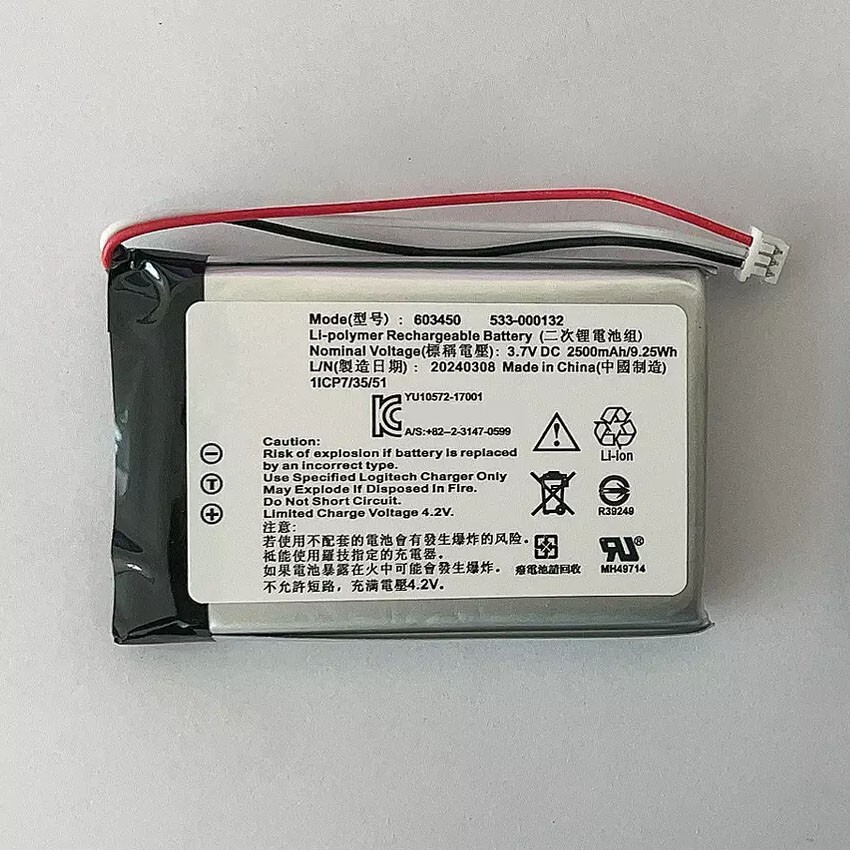 3.7V 2500mAh 533-000132 603450 New Replacement Battery for Logitech G933 G533