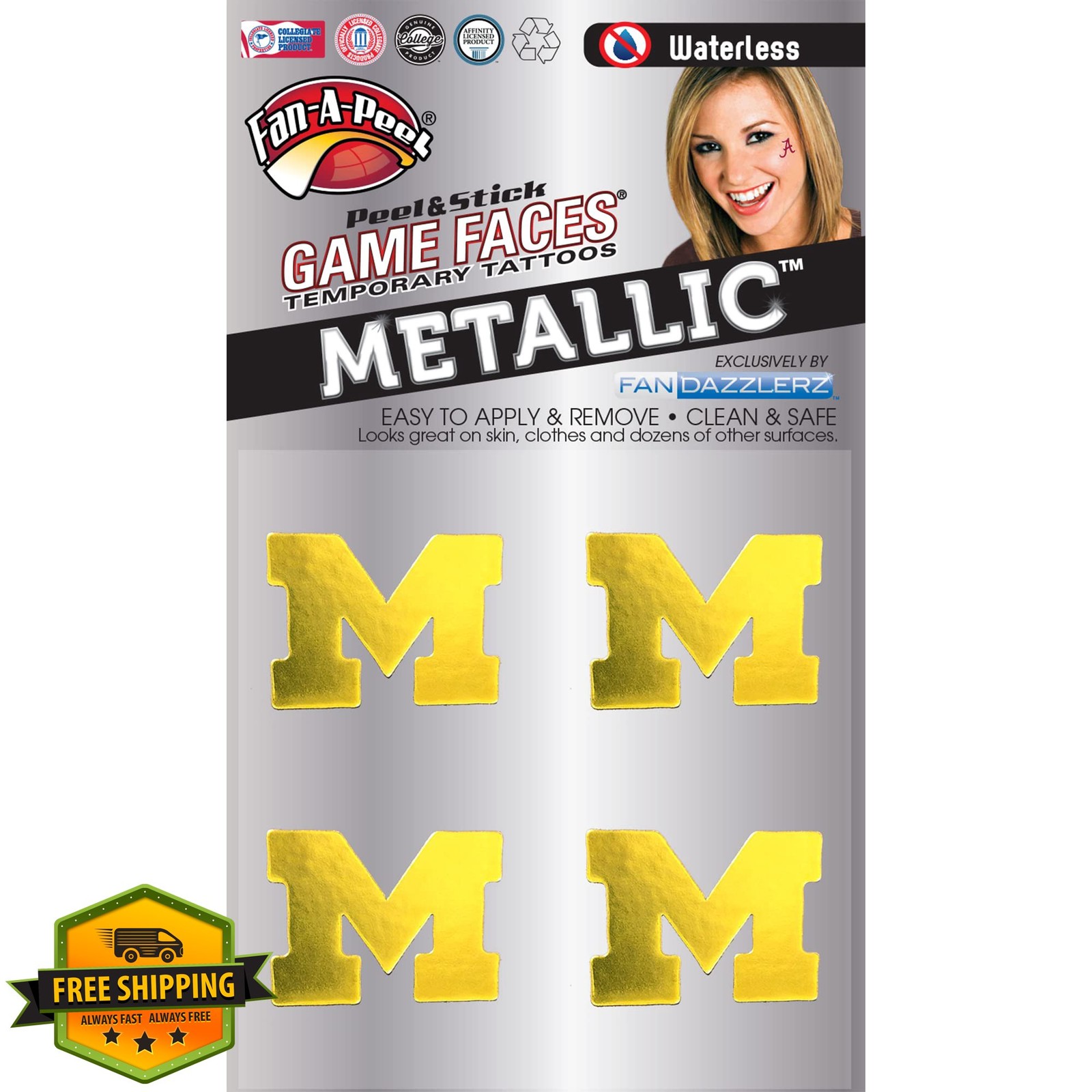 Fan-A-Peel Michigan Metallic Temporary Tattoos Peel Stick Waterproof