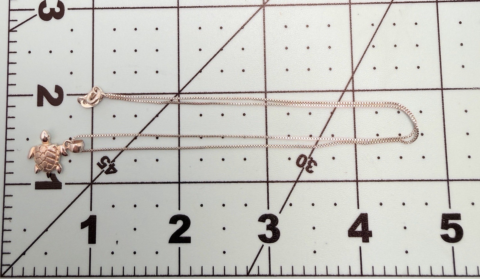 Dainty Sterling Silver Sea Turtle Necklace Italy Box Chain Ocean Charm Pendant