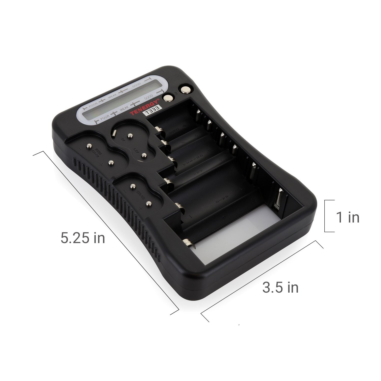 Tenergy T-333 Universal Battery Tester, LCD Display, Cell Small, Black