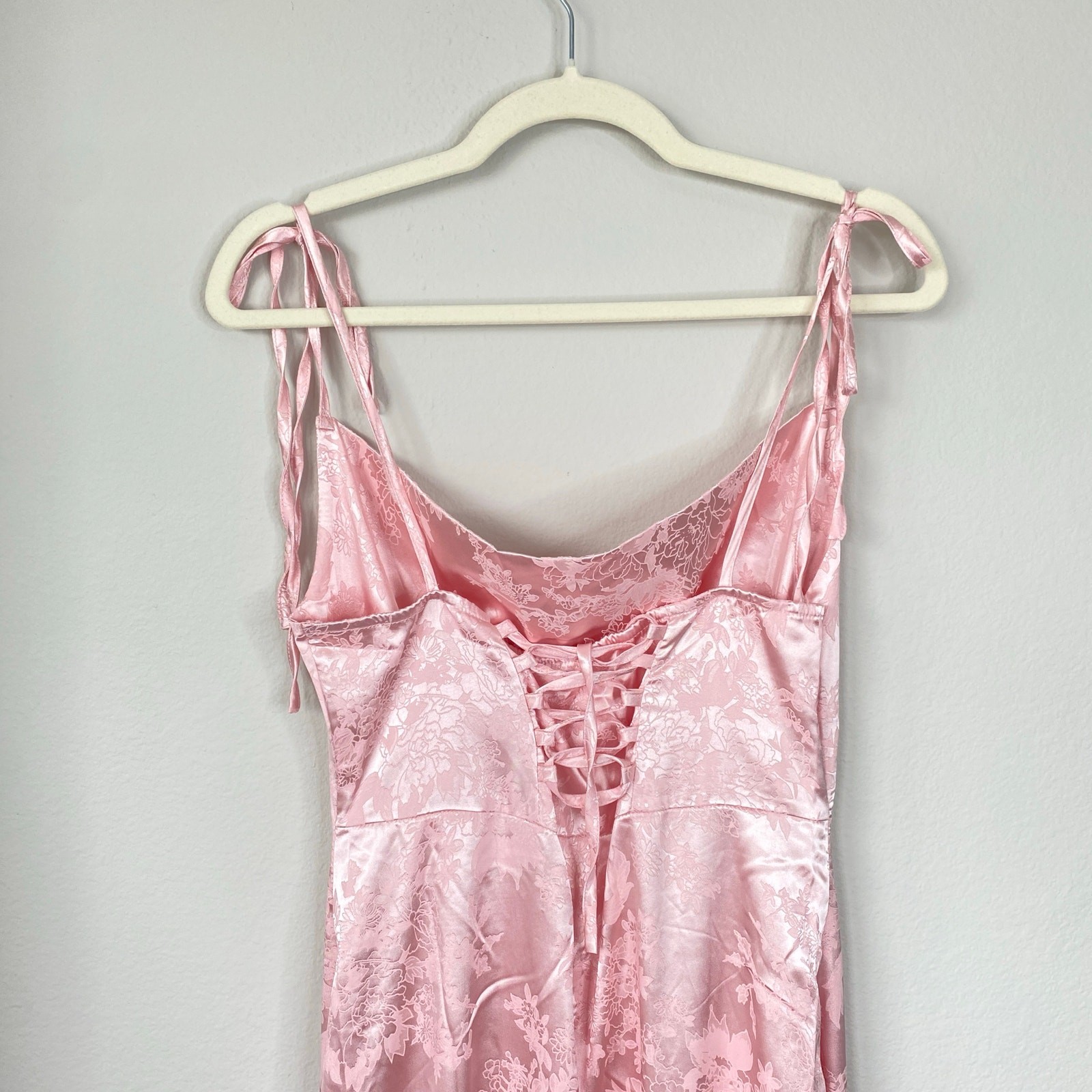 как выглядит MARTHEA Pink Satin Maxi Dress Gown Corset Princess Coquette Slip Size Large фото
